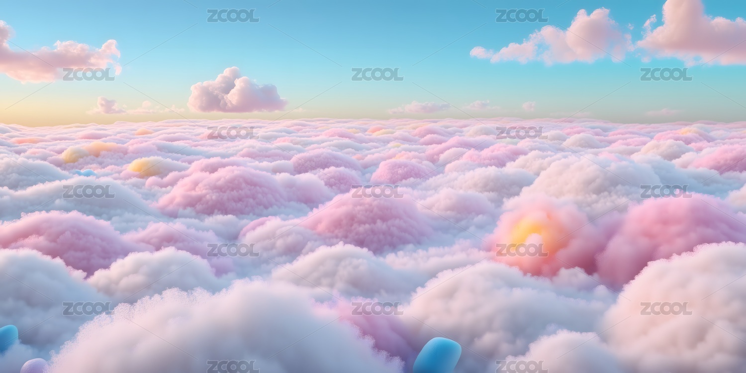 粉蓝云朵托彩球,晨曦晕染梦幻天际
