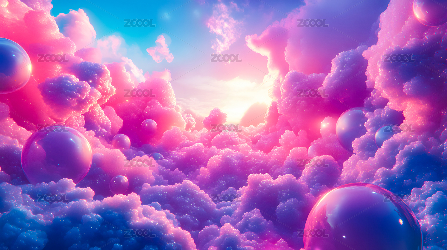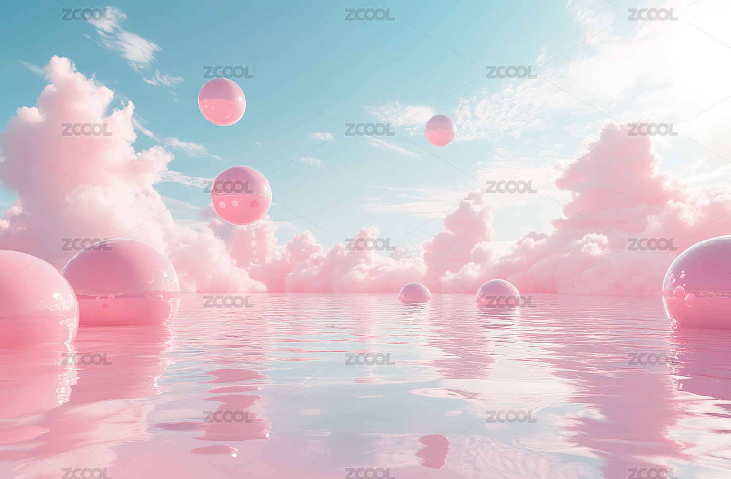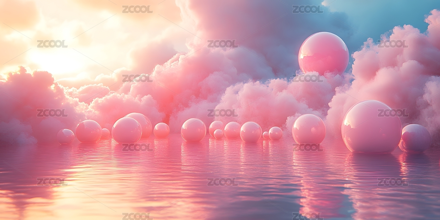 粉色,云朵,梦幻,天空,球体,漂浮,童话,浪漫,唯美,意境