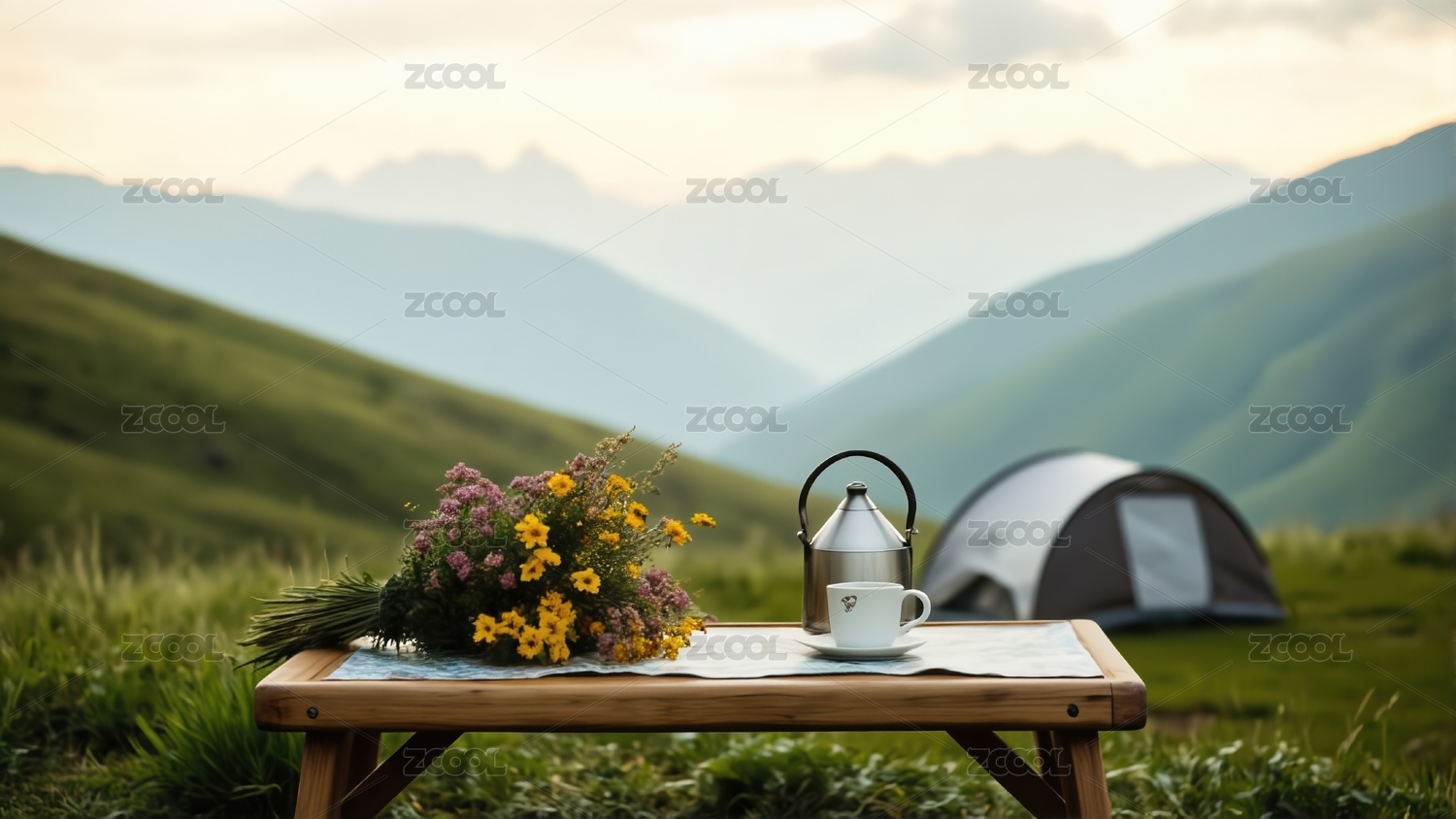 户外,露营,装备,娱乐,休闲,插图,灯饰,马灯,山,草地
