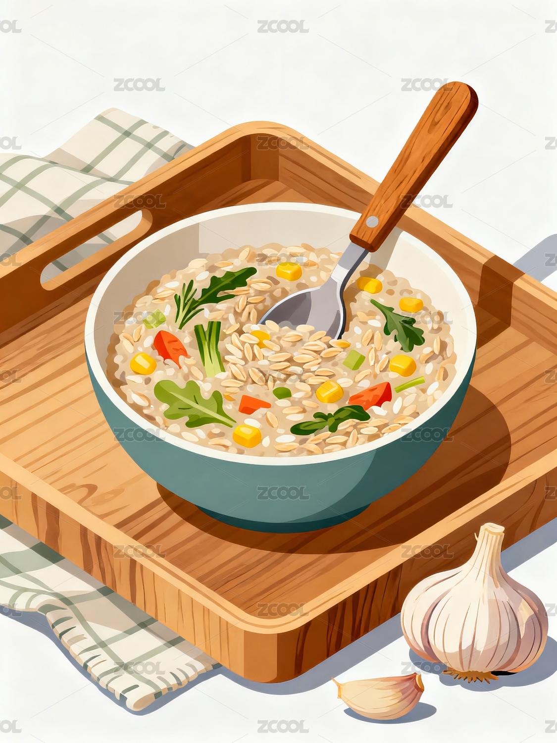 炒饭,美食,米饭,蔬菜,背景,插画,手绘,写实,唯美,简约