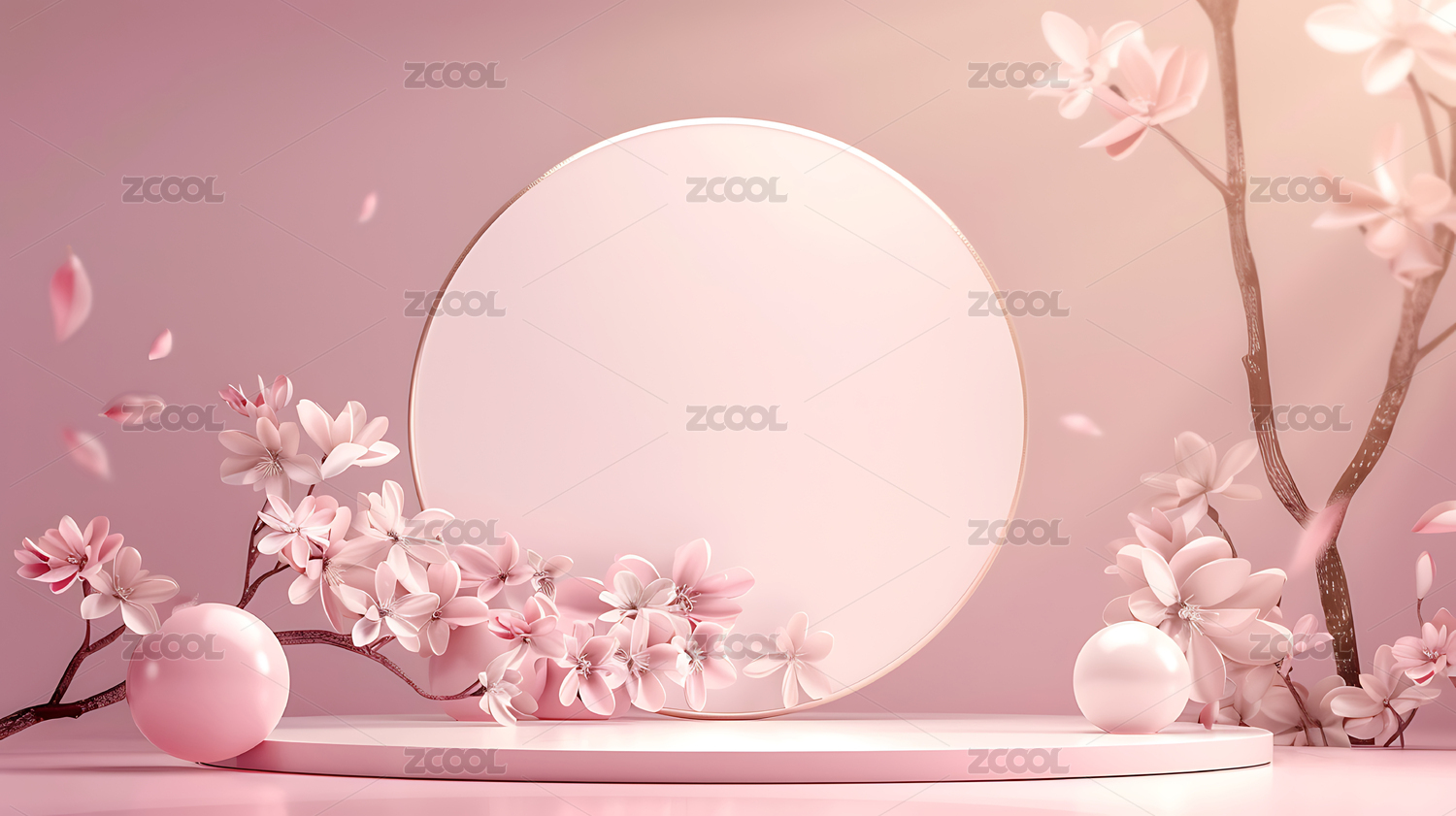 淡雅自然樱花圆台电商展示舞台