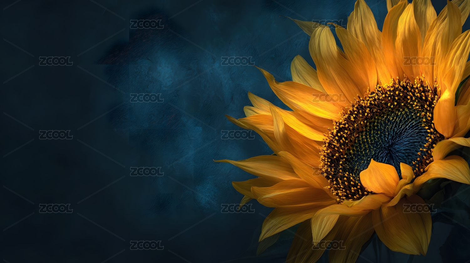 暗蓝背景下向日葵特写