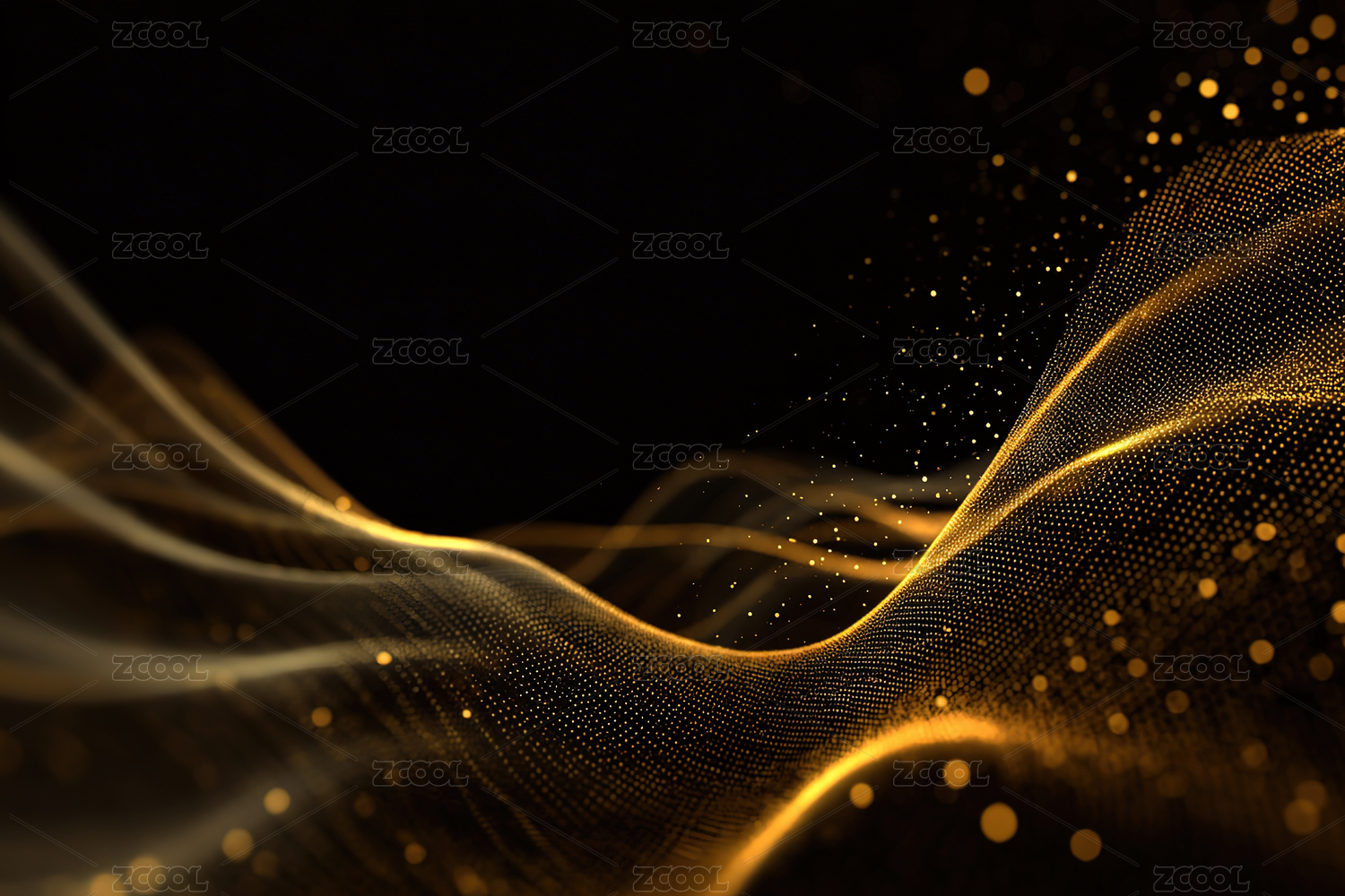 金色波浪与粒子的抽象背景