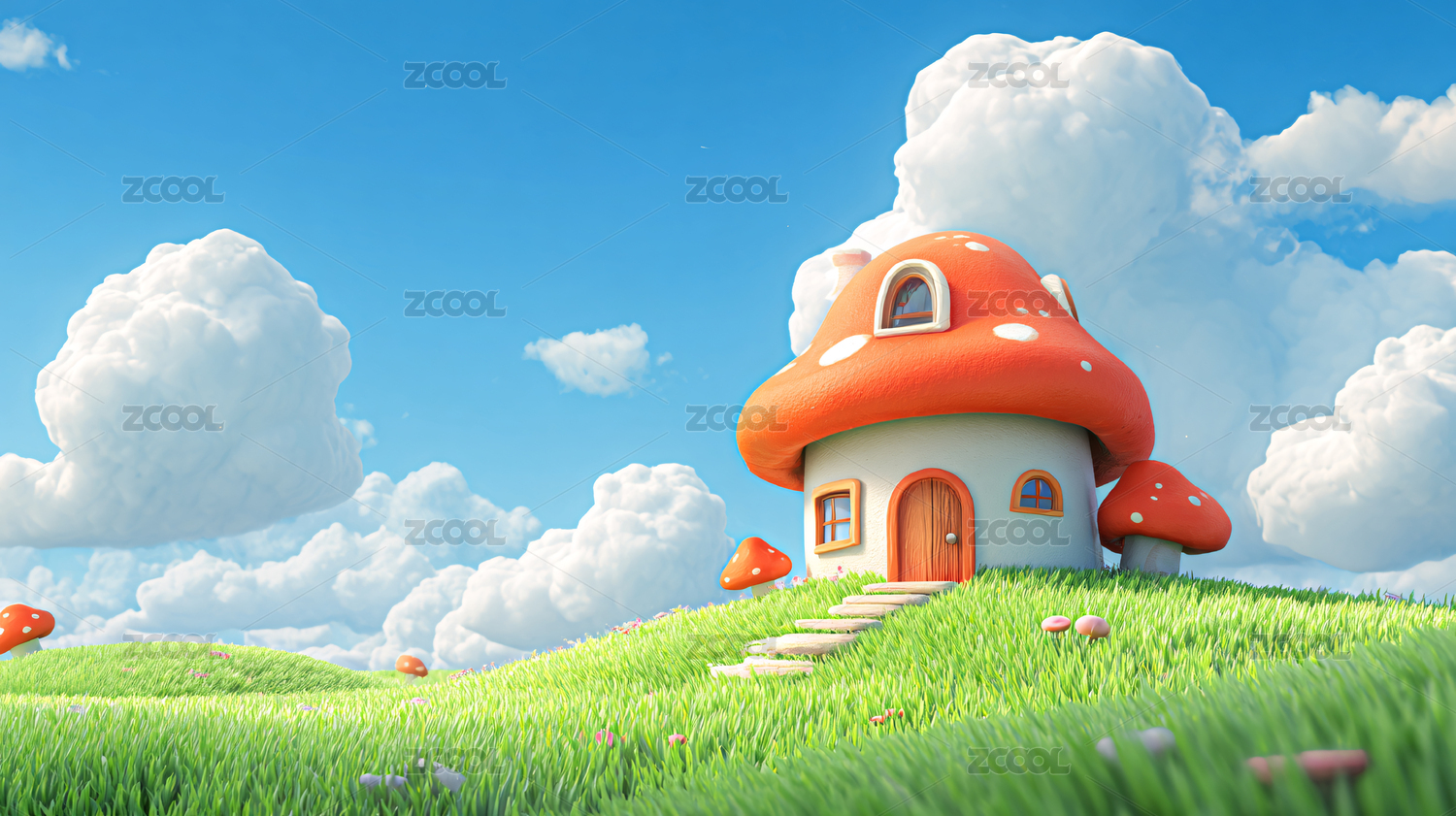 蘑菇屋房子梦幻想象场景童话故事3D插画
