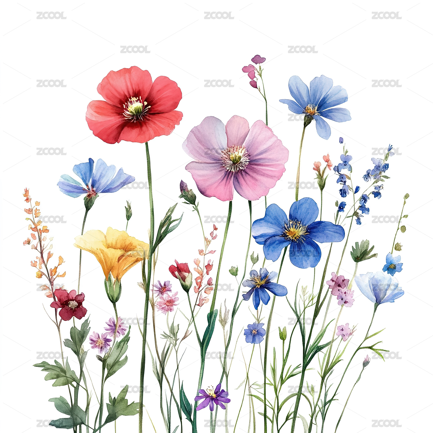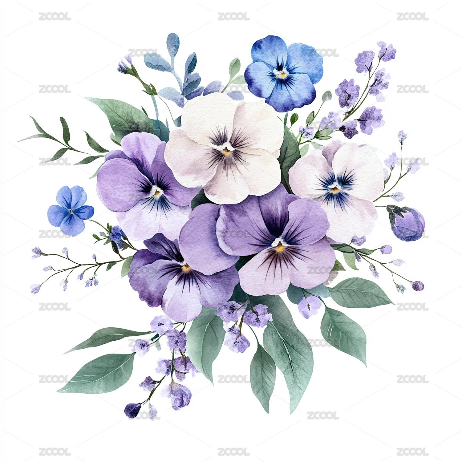 唯美装饰图案自然花卉绿植花束鲜花插画