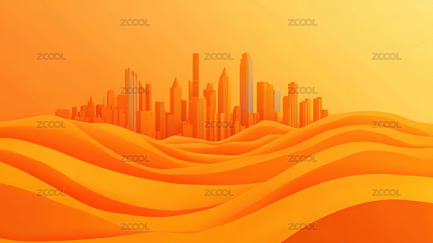 金色沙漠城市建筑剪影
