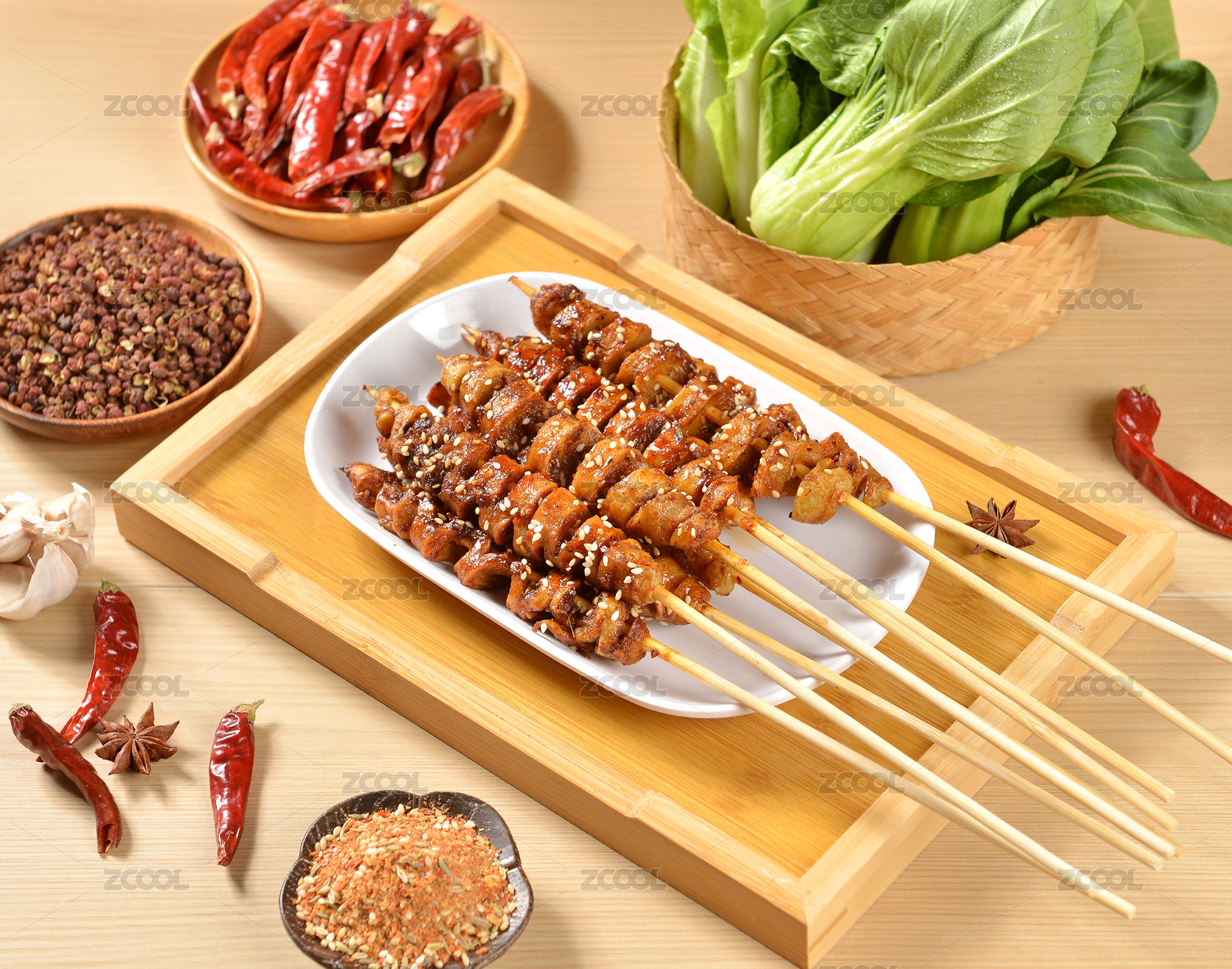 木桌子上的烧烤