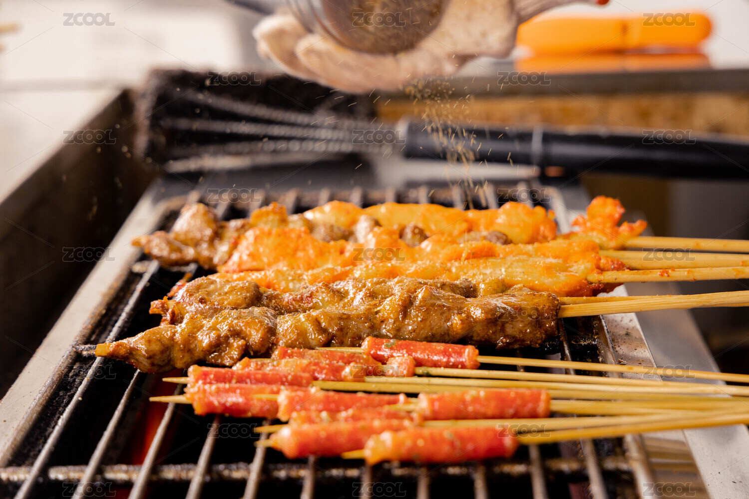 满是烟火气的烤炉上的鲜羊肉新疆红柳大串