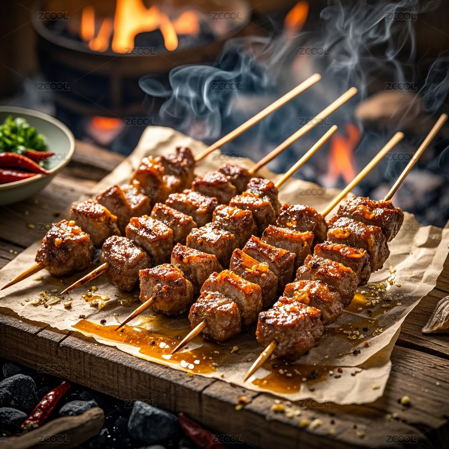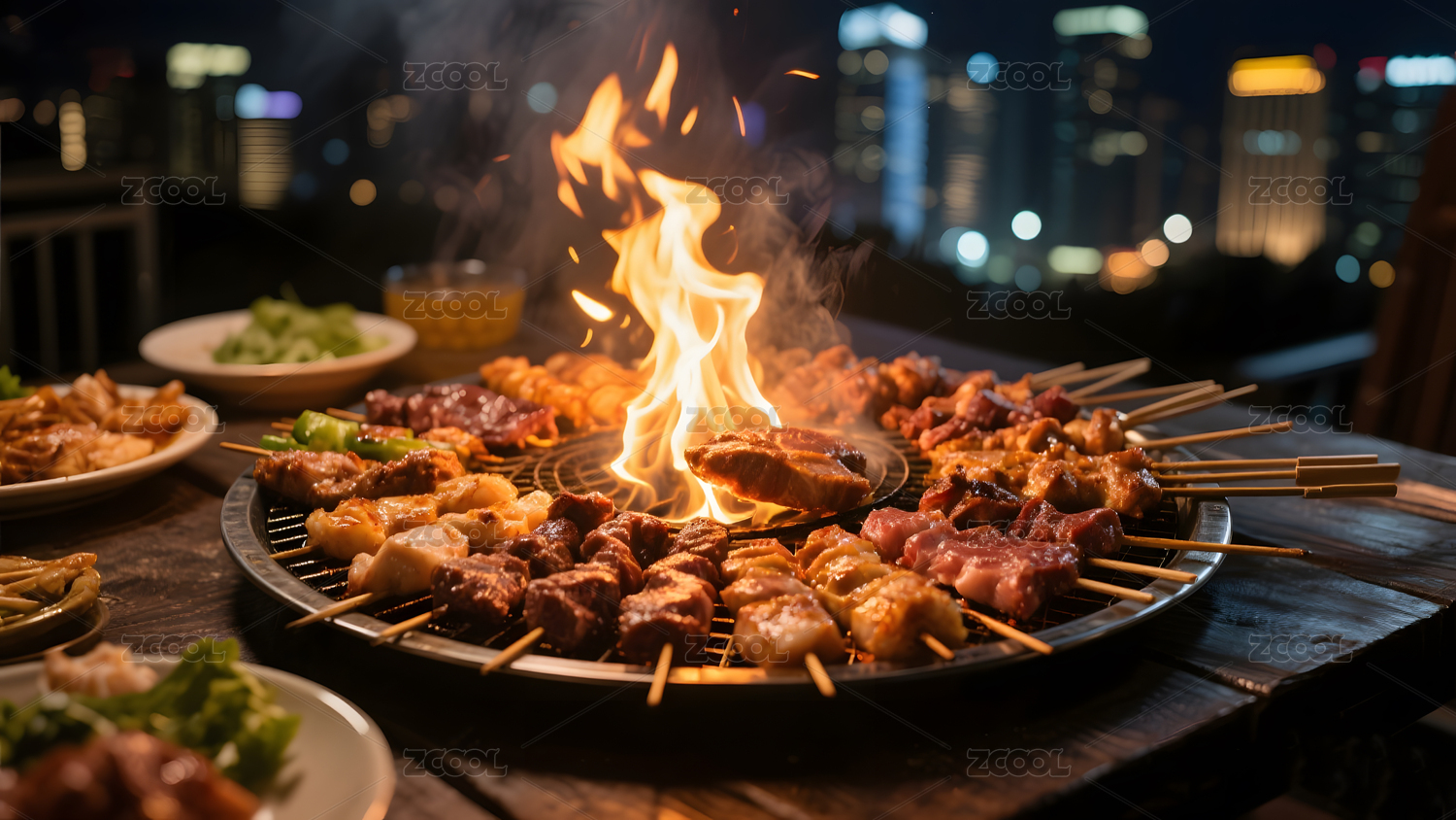 围炉火焰烧烤烤肉