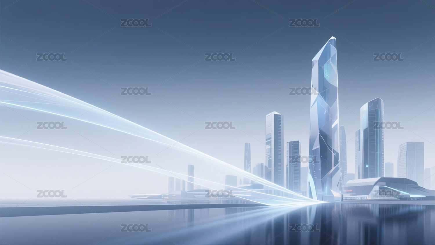 水晶城市天际线科技背景