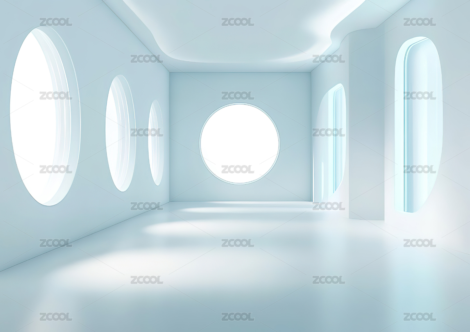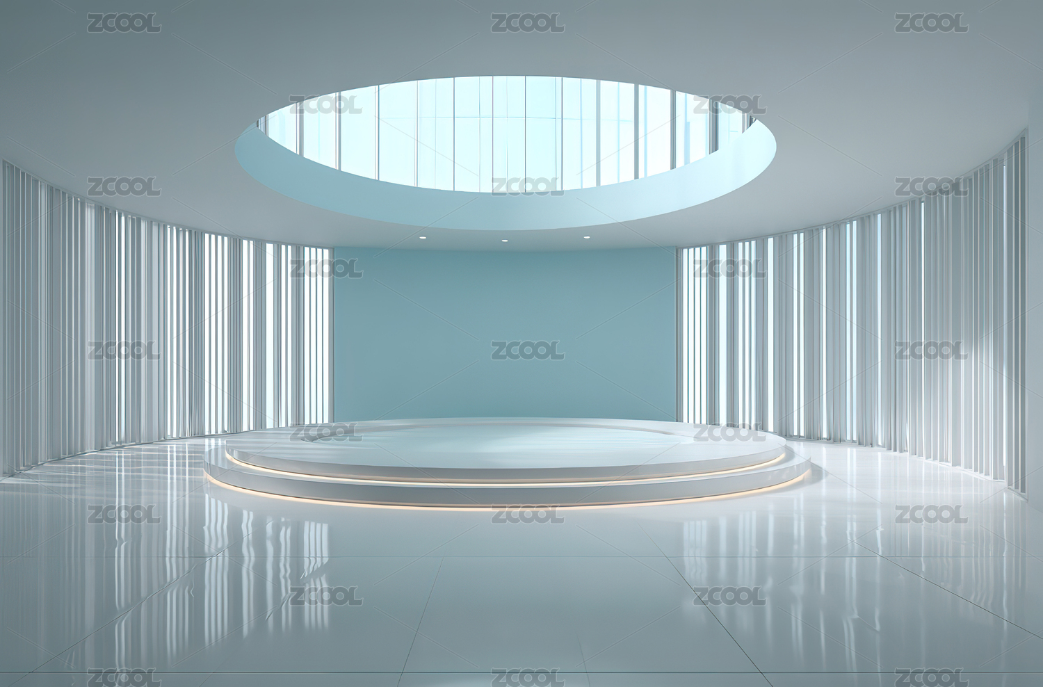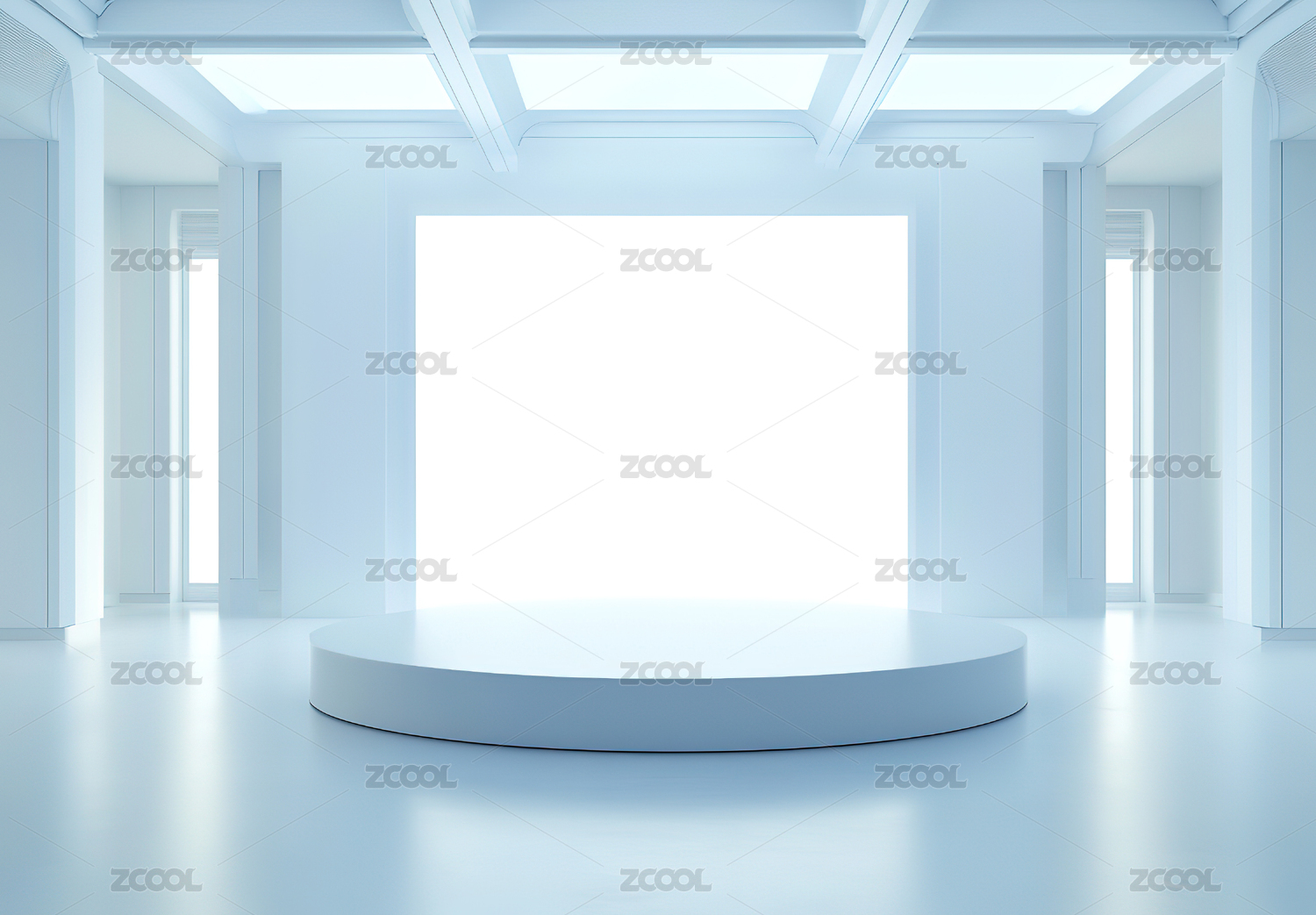 室内,简约,展示,空间,白色,明亮,现代,平台,屏幕,建筑