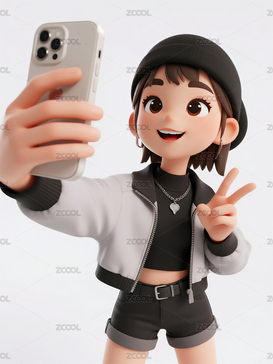 人物,设计,3D,立体,少女,女孩,卡通,可爱,手机,自拍