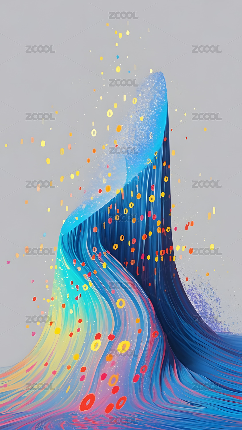 蓝色彩带流动并点缀彩色颗粒的灵动画面