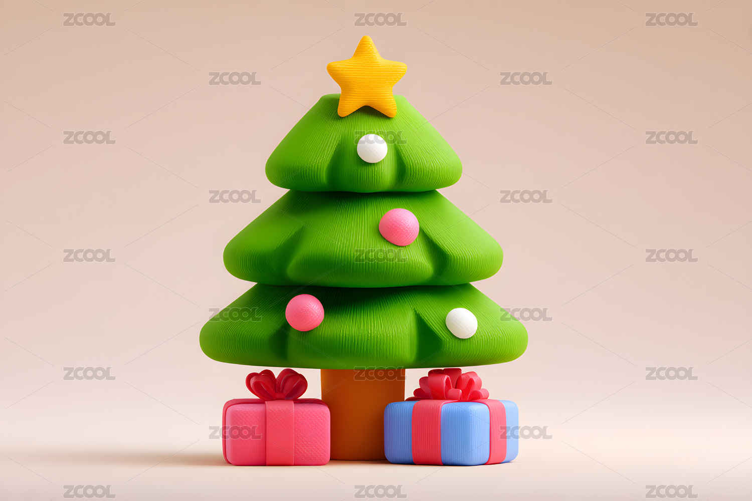 圣诞节圣诞树卡通Q版3D单体单色背景素材