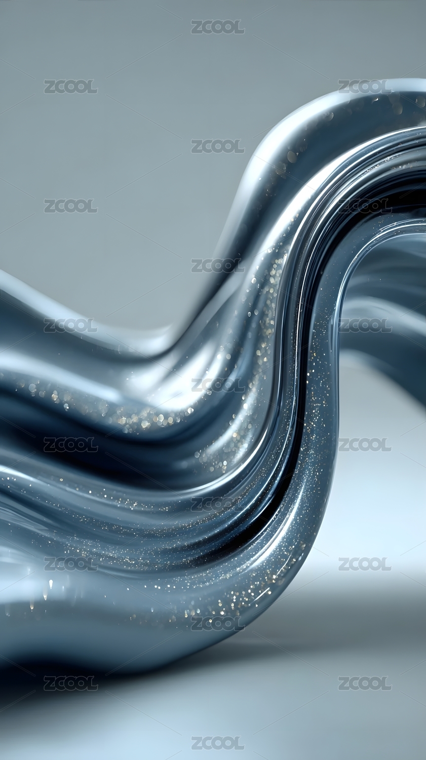 3D流体玻璃质感液体金属的抽象背景