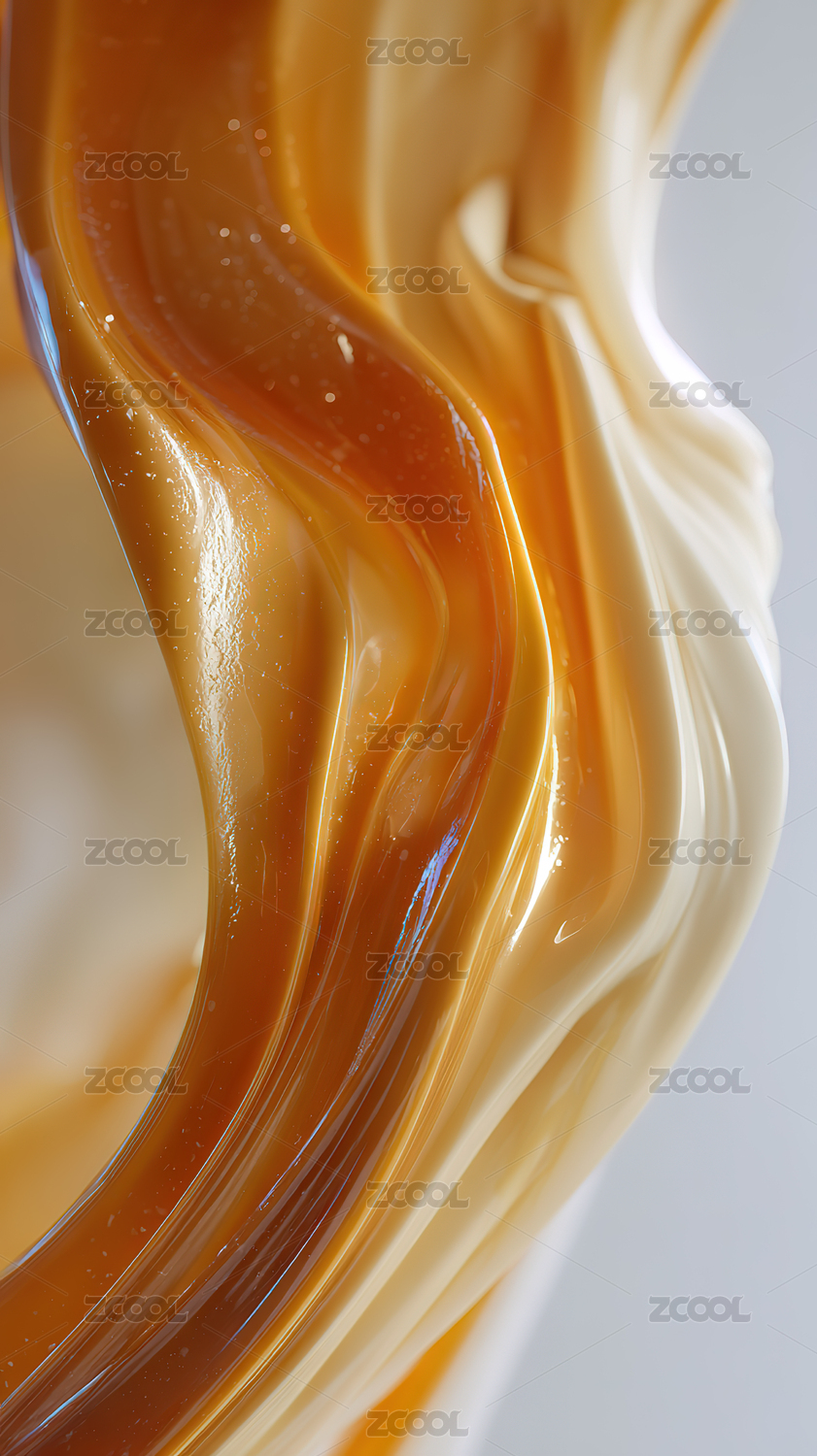 流动的琥珀色和奶白色液体