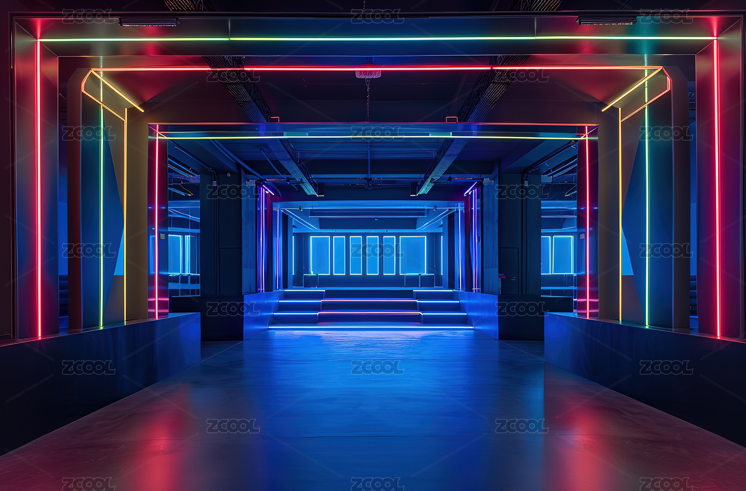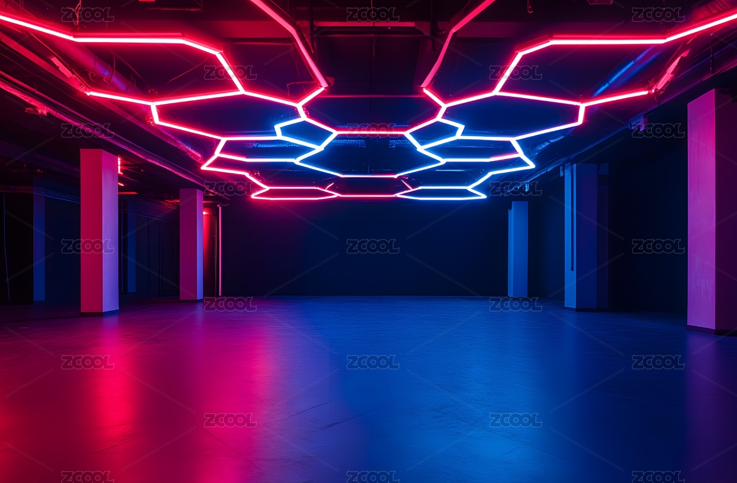 未来,科技,室内,空间,设计,灯光,紫色,蓝色,反射,地板