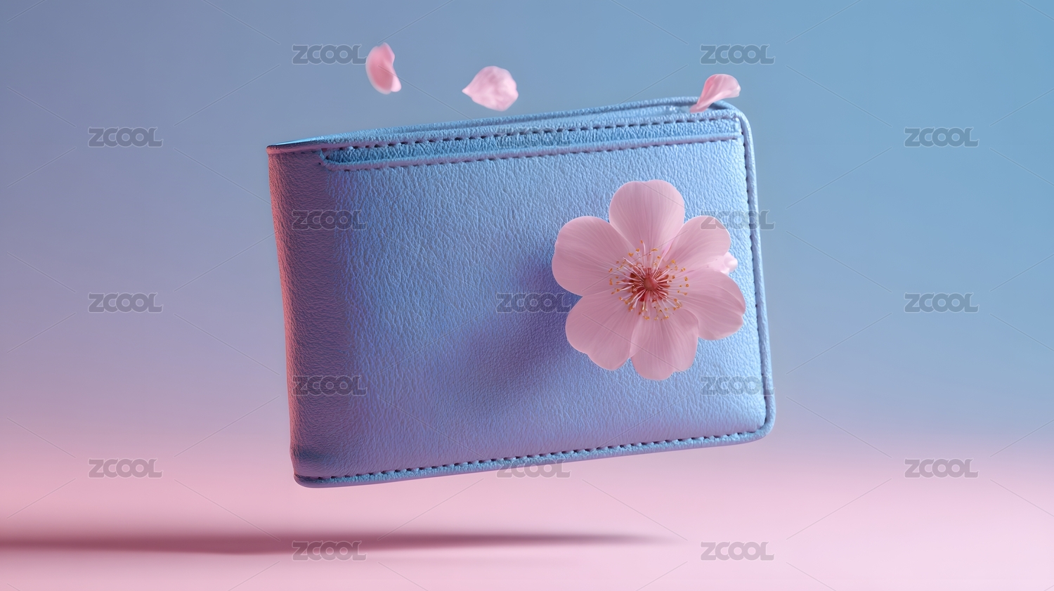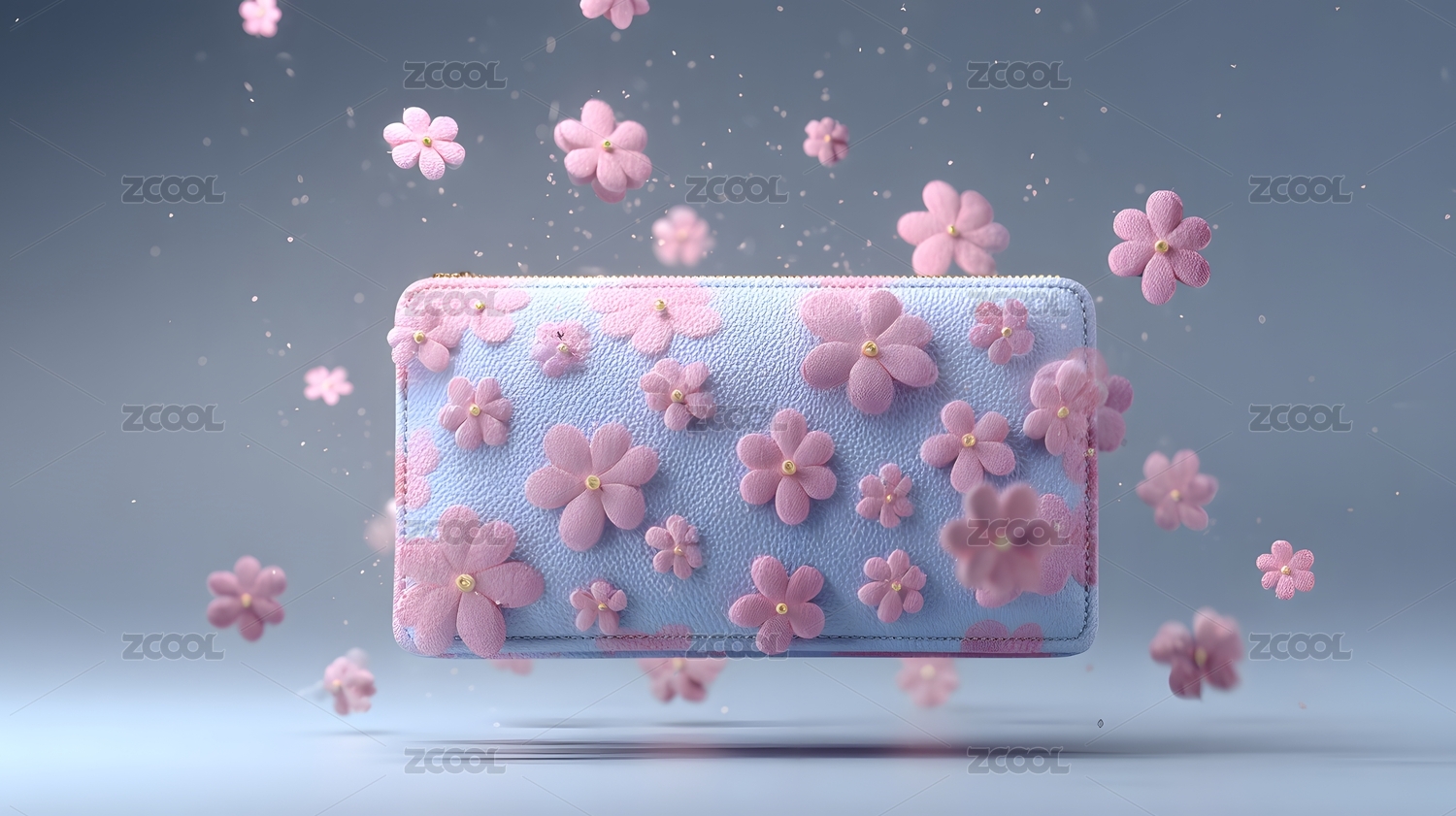 轻柔紫钱包悬浮花瓣暗蓝背景