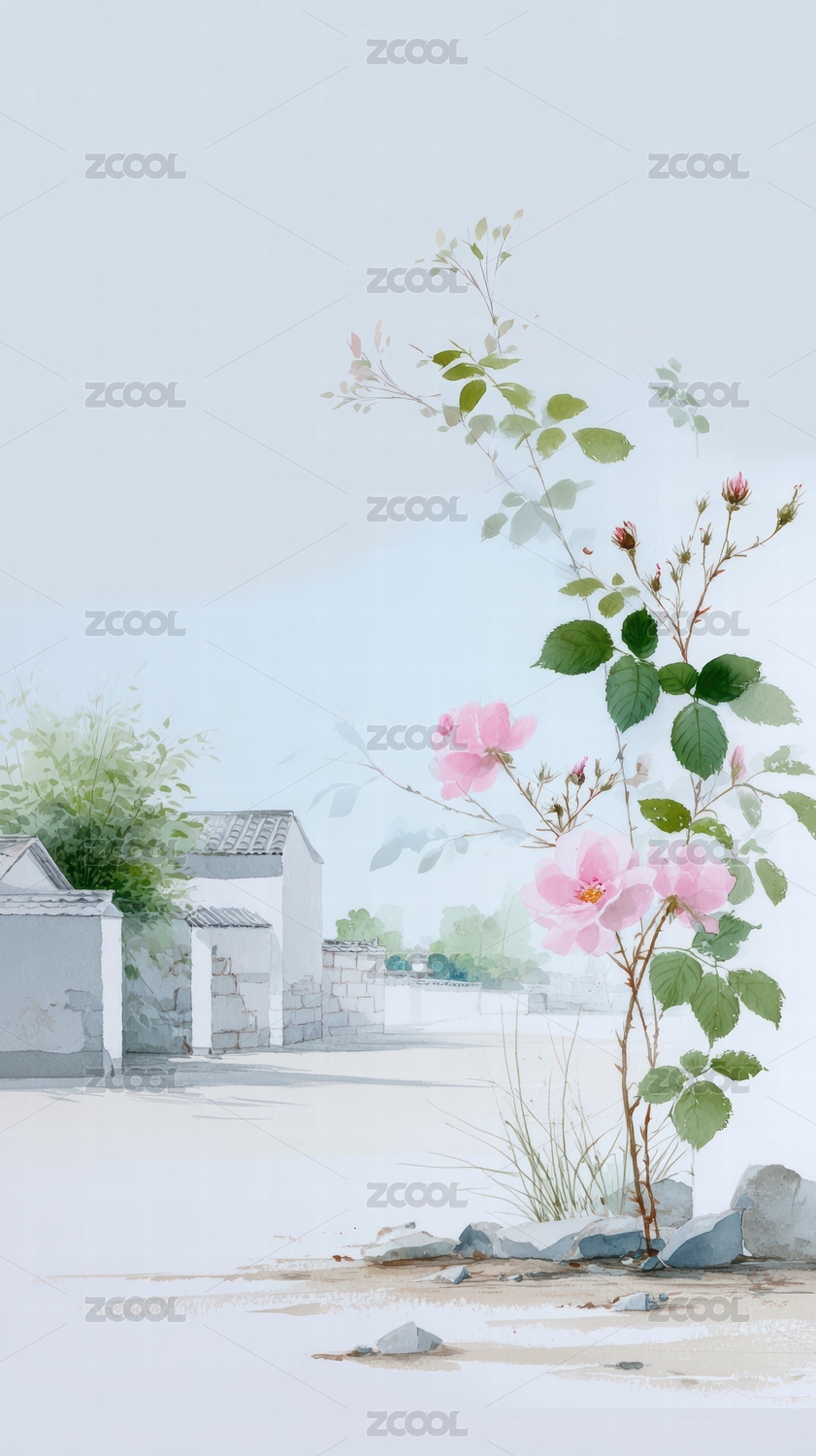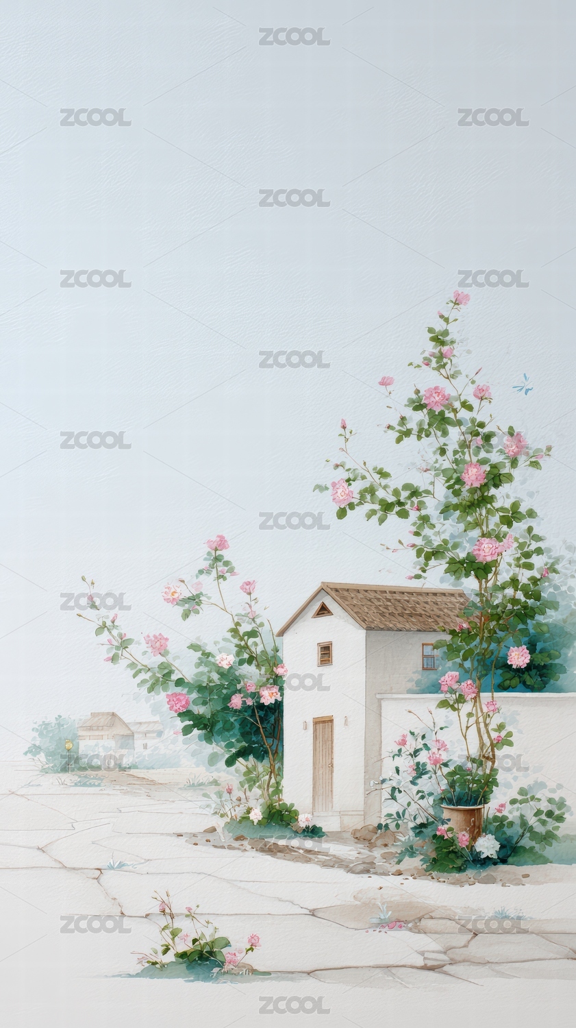 光影,静谧,花朵,绿叶,柔和,房屋,庭院,乡村
