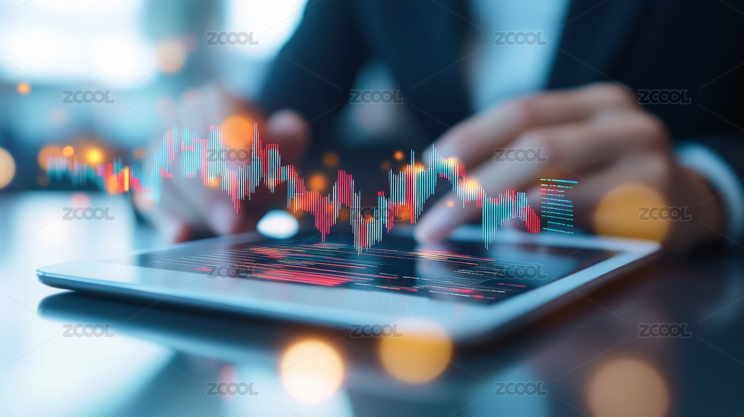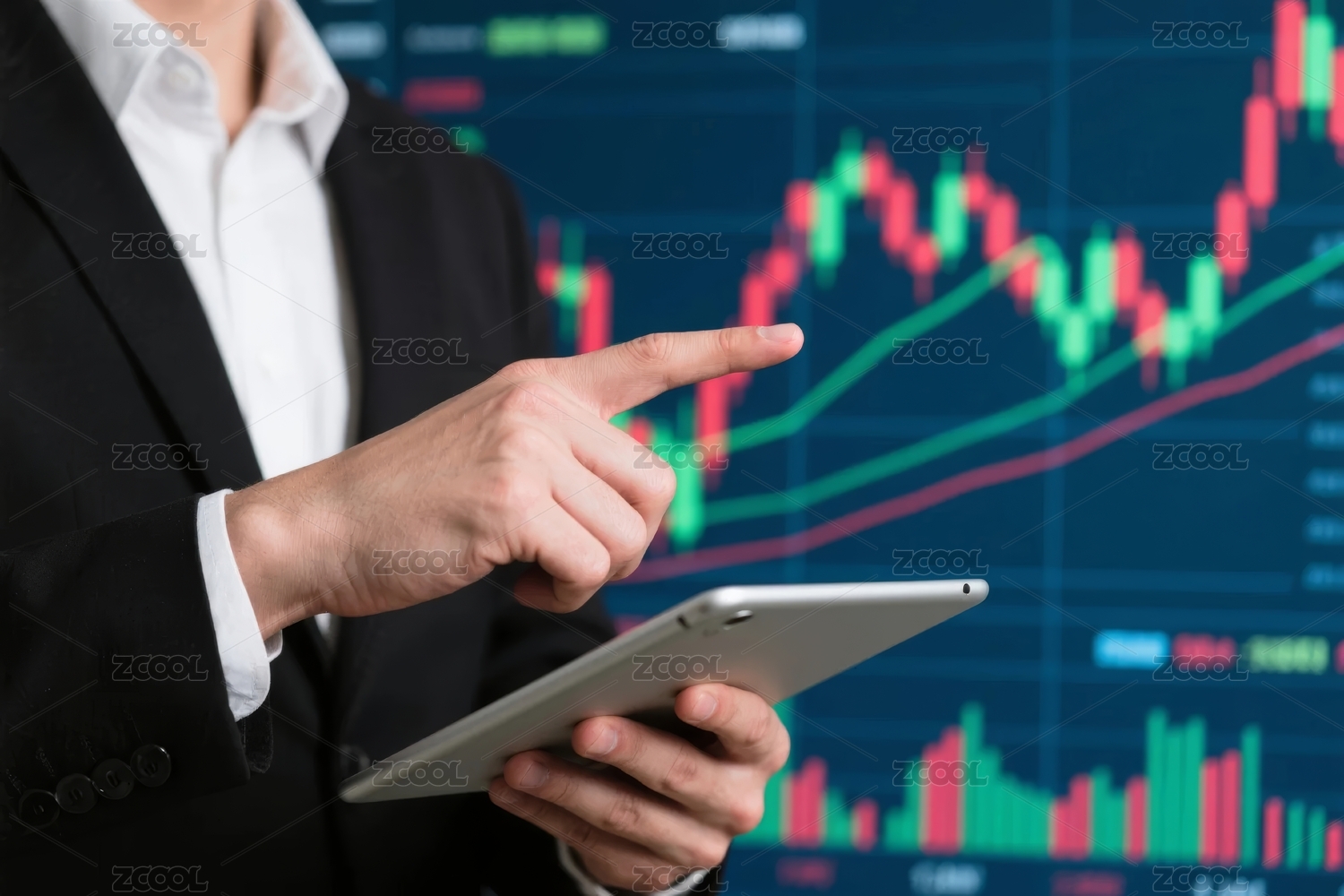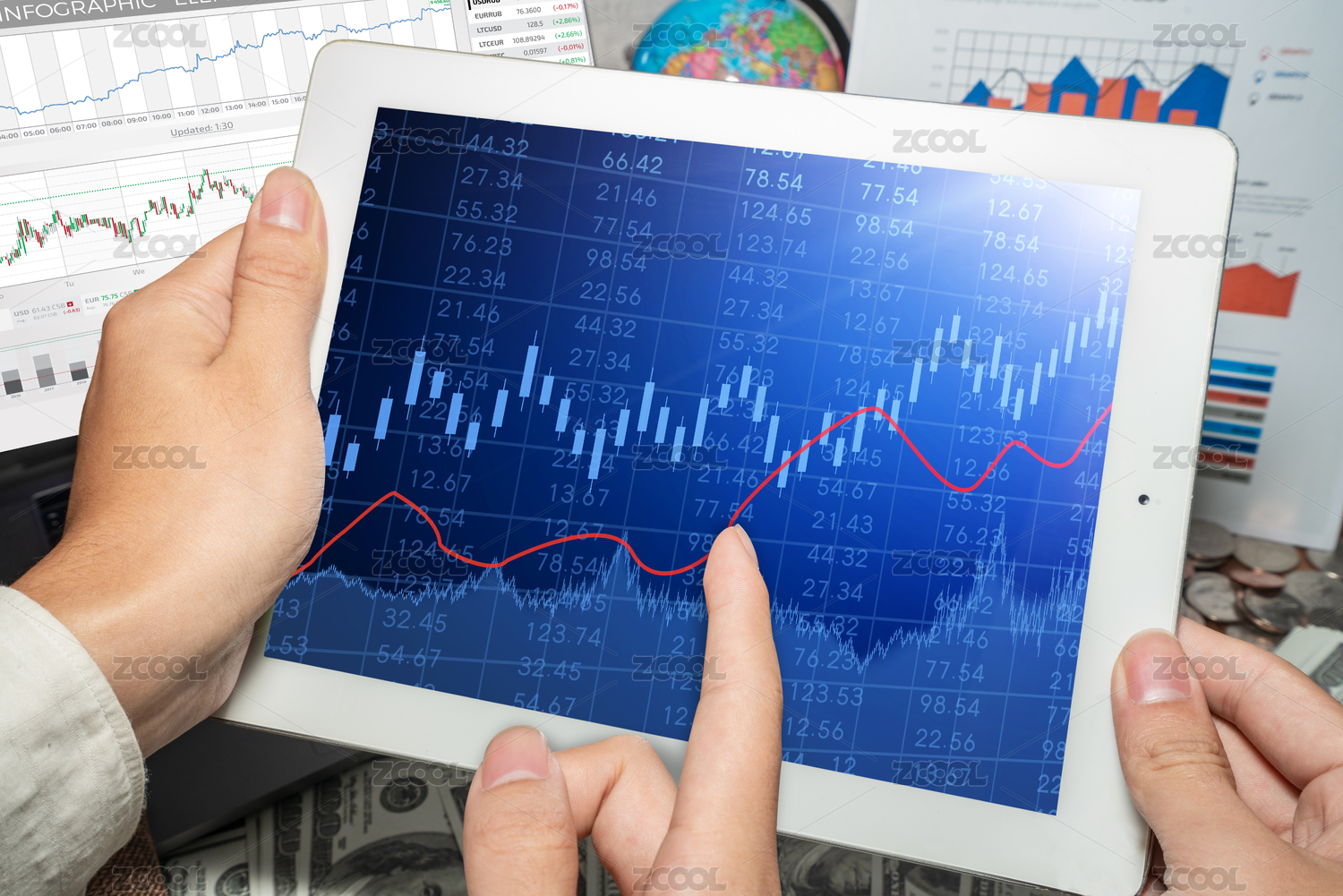 金融人士使用平板和电脑分析财经股票股市走势趋势
