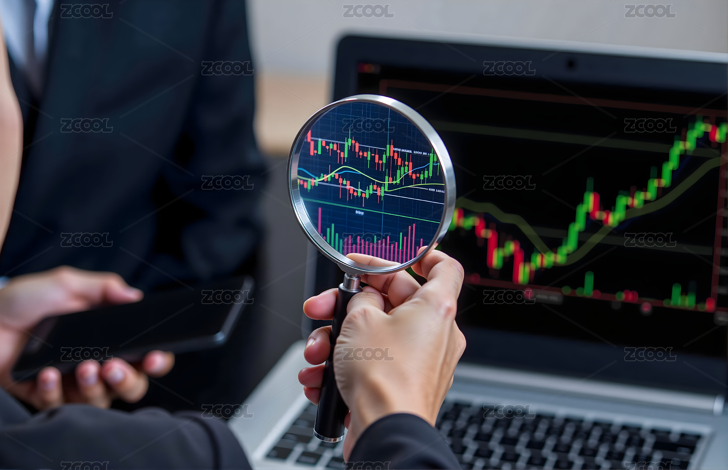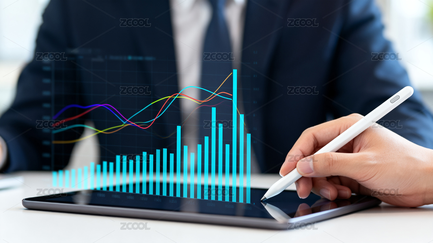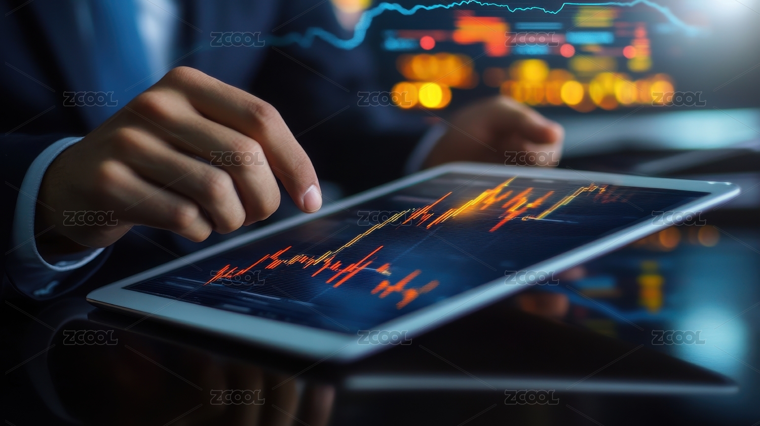 金融人士使用平板和电脑分析财经股票股市走势趋势