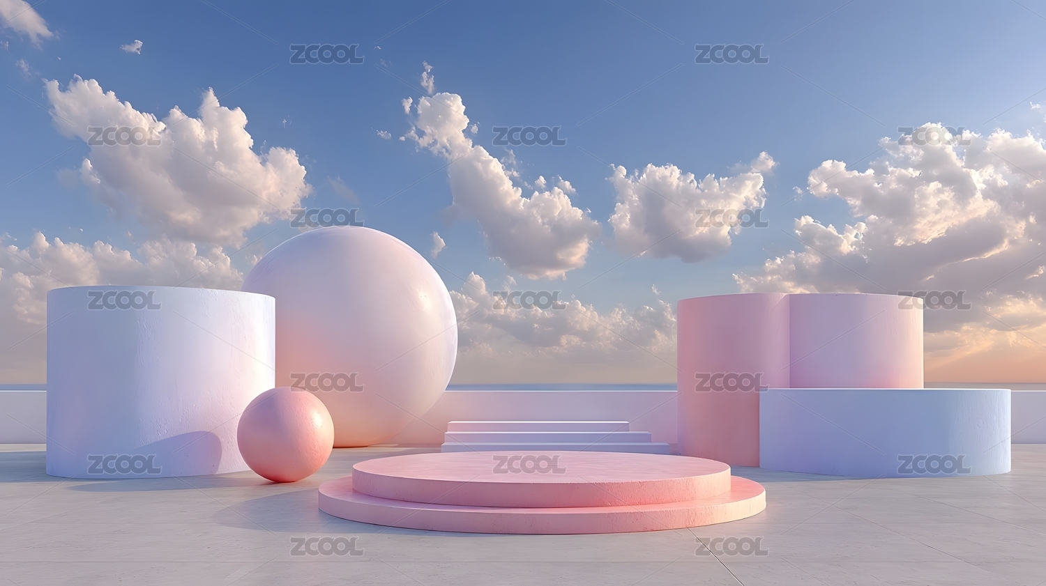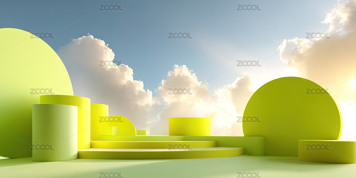 产品展台,三维图形,绿色,夏天,薄荷绿,黄色,简单,极简,立体,圆形