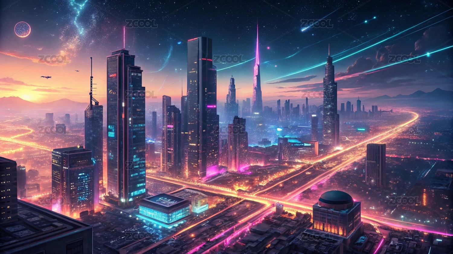 主视觉,场景,灯光,建筑,氛围,都市,夜景,高楼,城市,未来