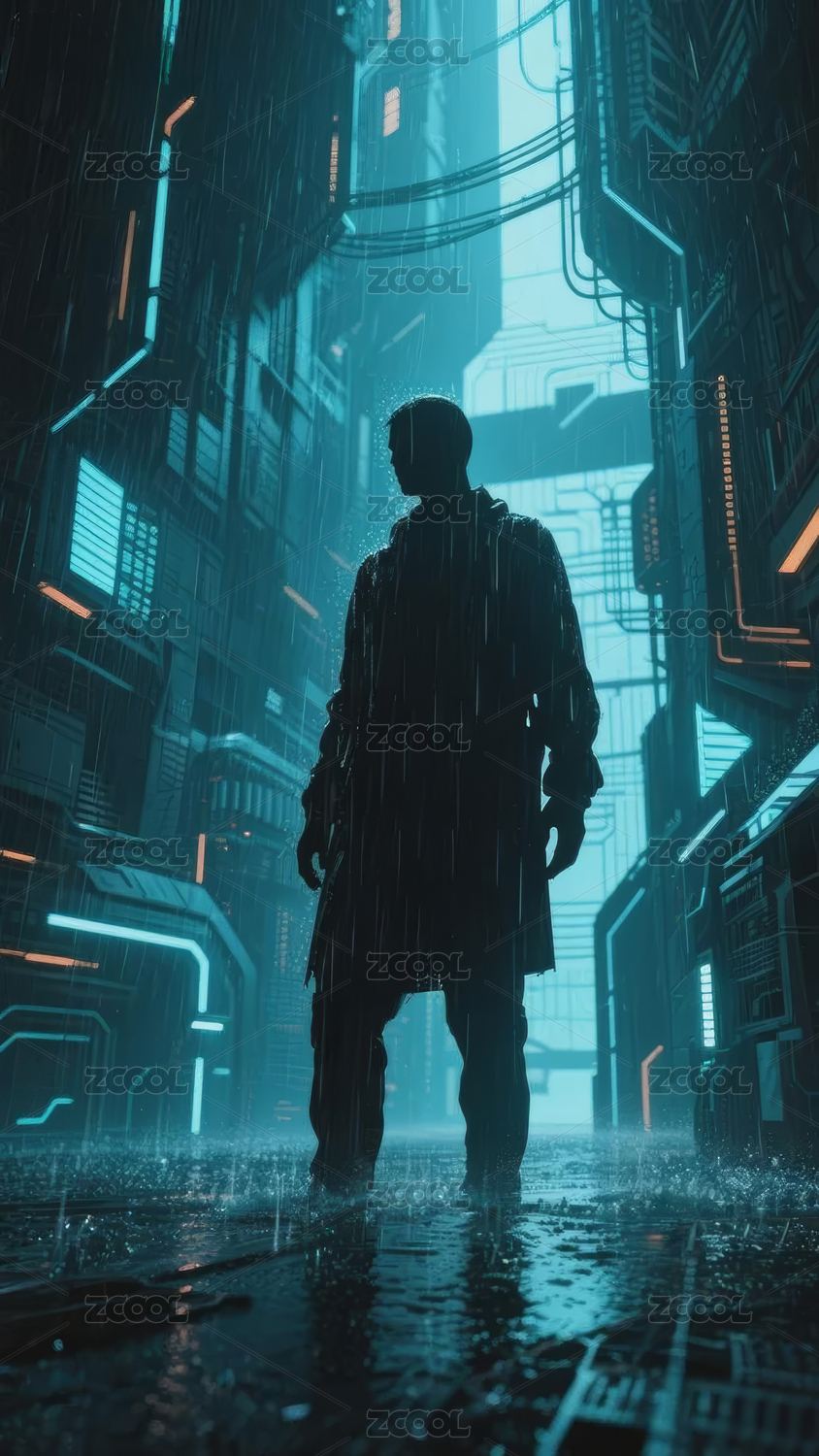 未来城市中的神秘人物