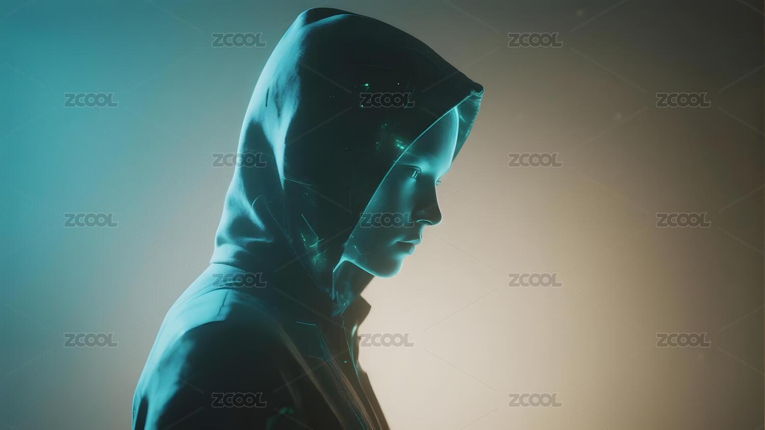 侧脸人物身穿连帽外套光影效果