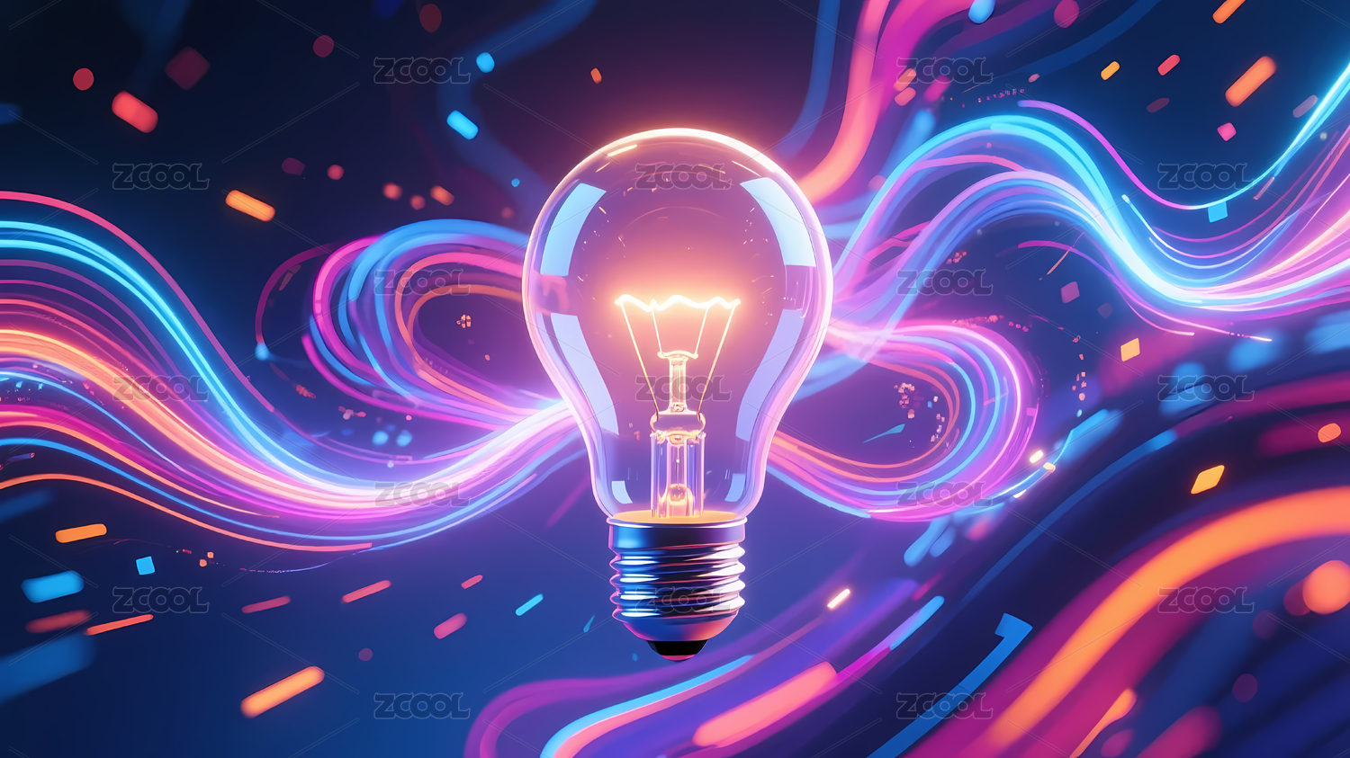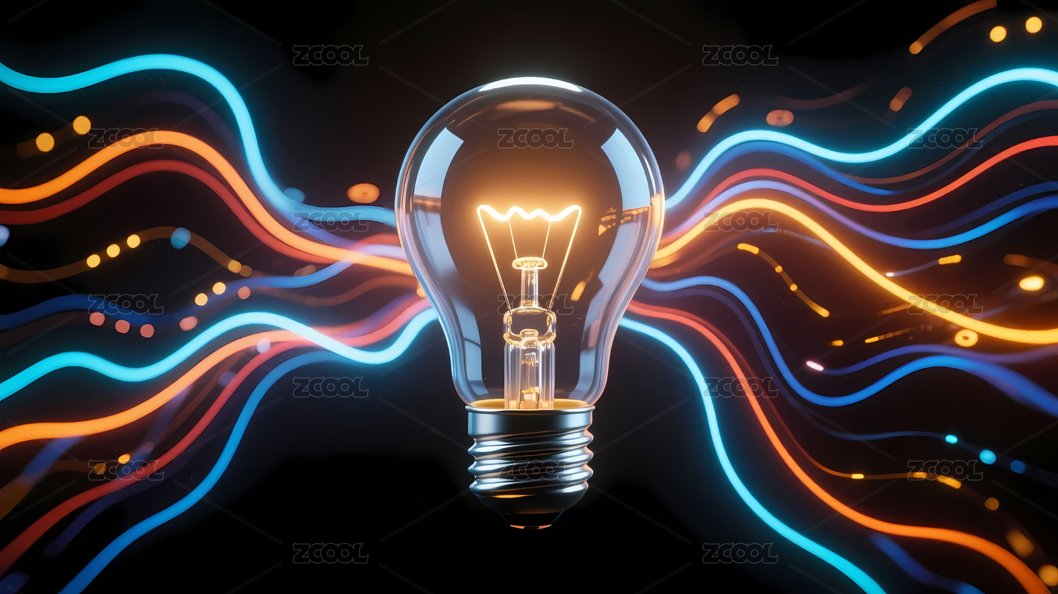 发光灯泡彩色波浪线