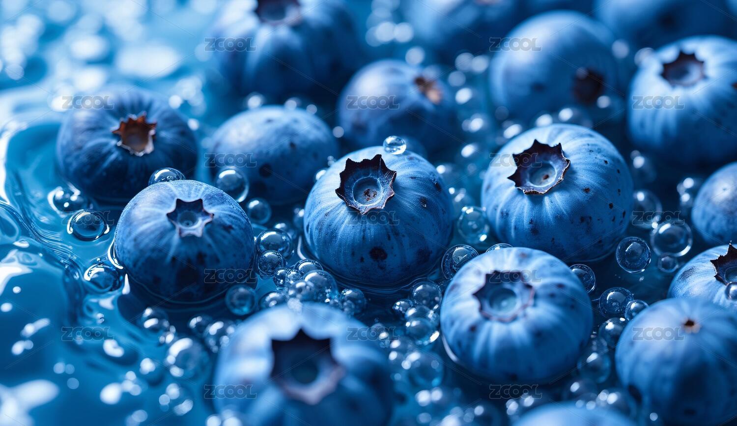 蓝莓浸泡水中表面布满气泡