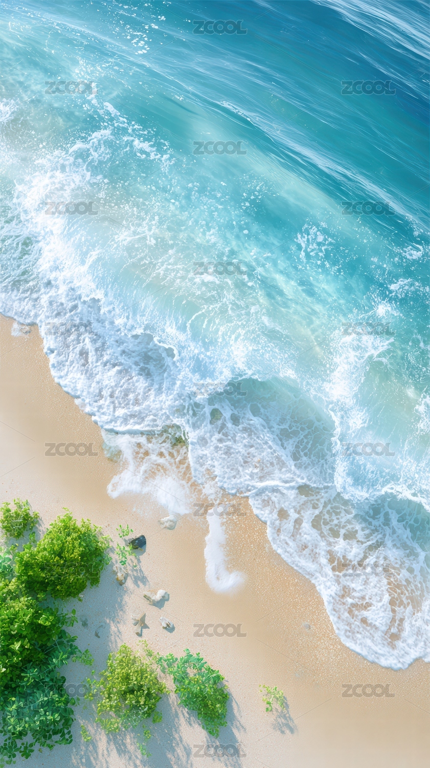 海浪沙滩交汇图景