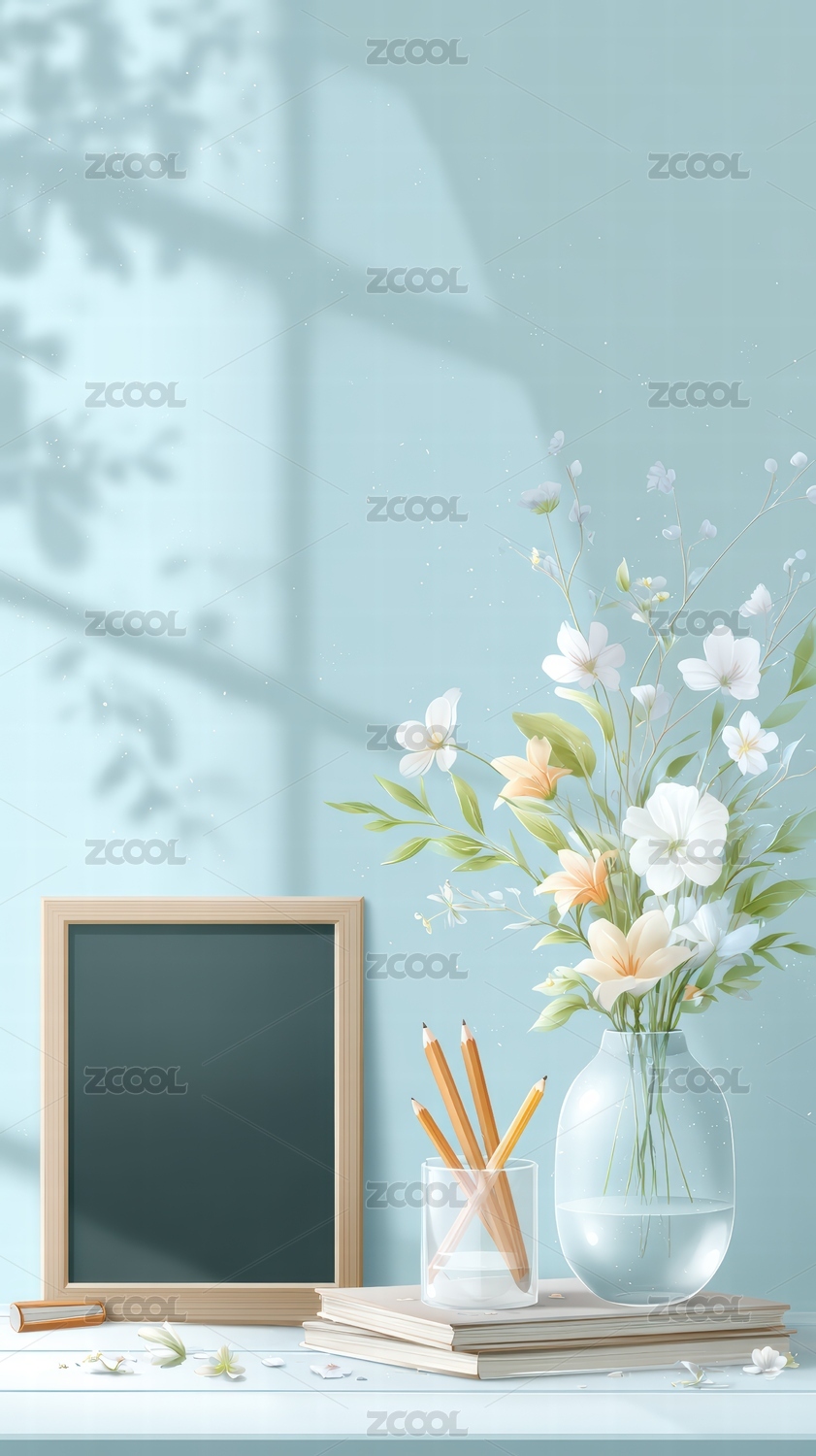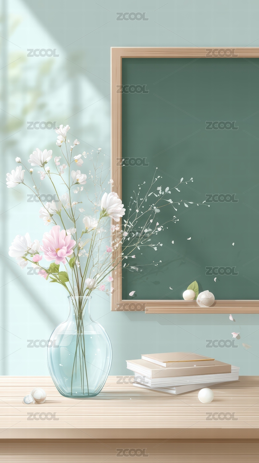 室内清新花瓶与黑板静谧场景