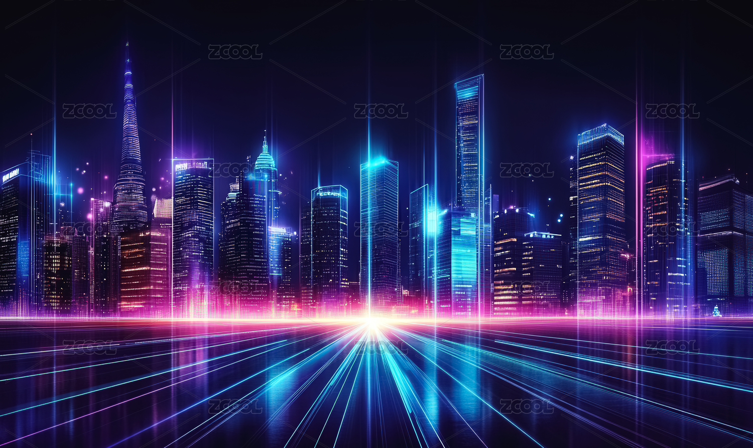 未来,城市,夜景,高楼,大厦,霓虹灯,科技,现代化,街道,建筑