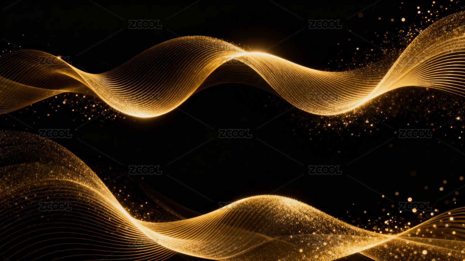 金色,波浪,黑色背景,光线,流动,抽象,艺术,设计,曲线,动态