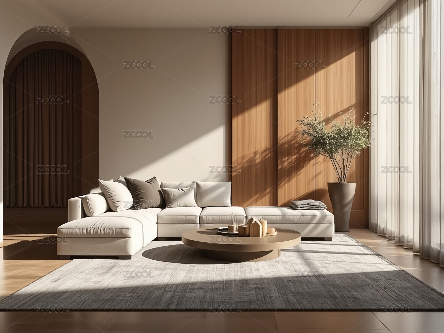客厅,设计,现代,简约,木质,墙面,白色,沙发,圆形,茶几