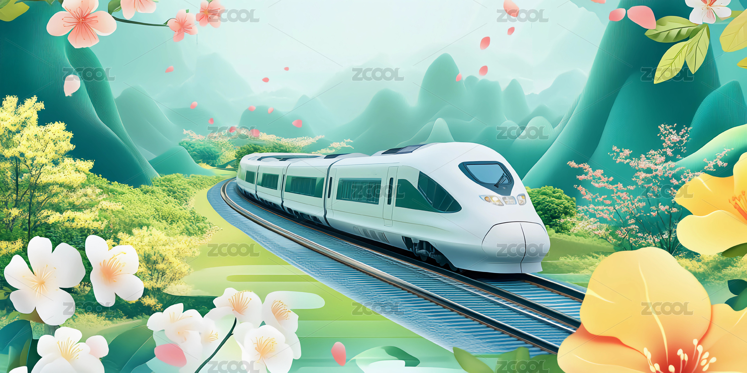 春天高铁出行插画
