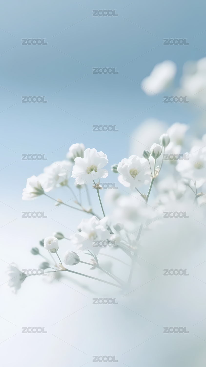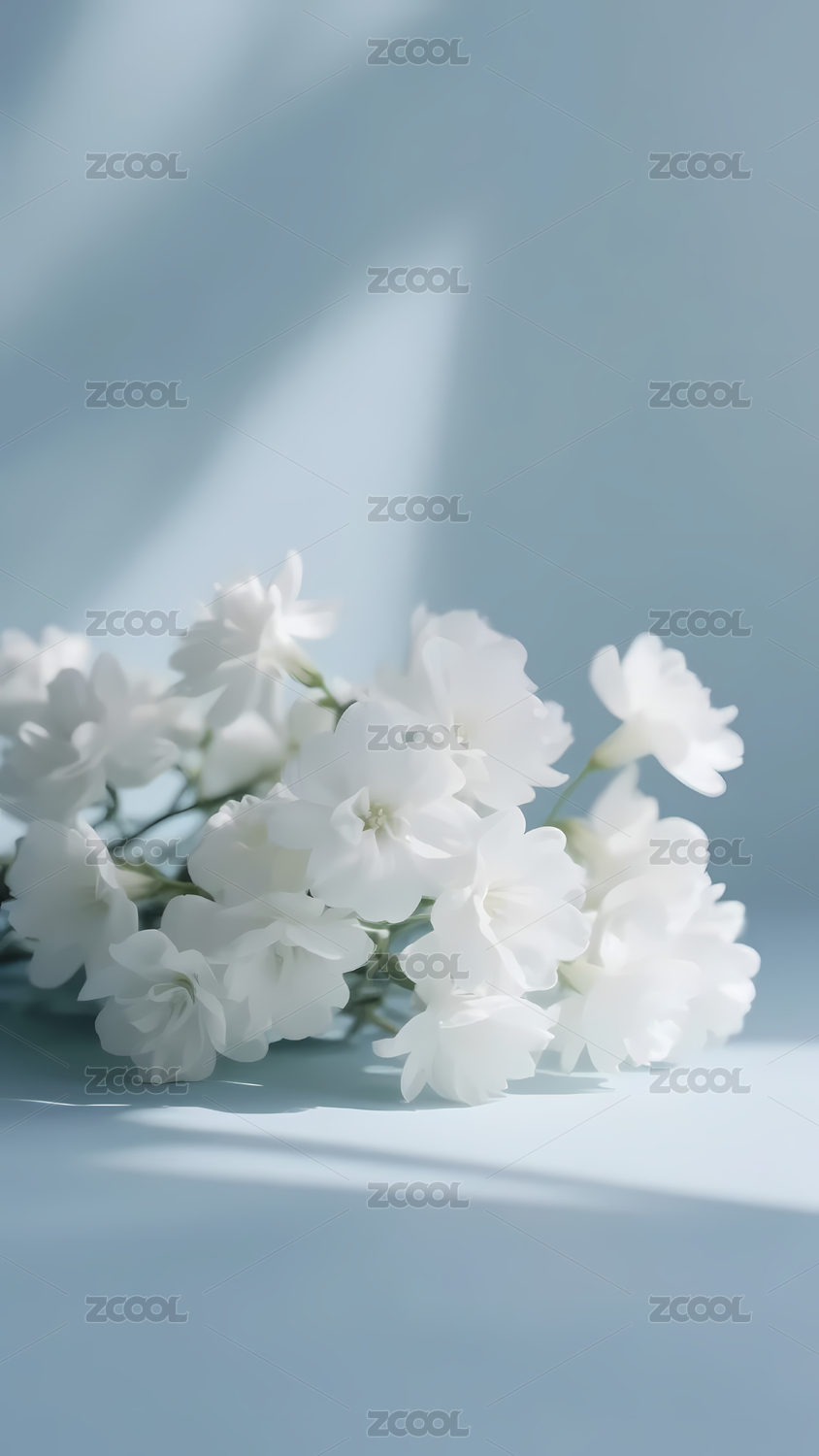 淡蓝色唯美小白花装饰的展台