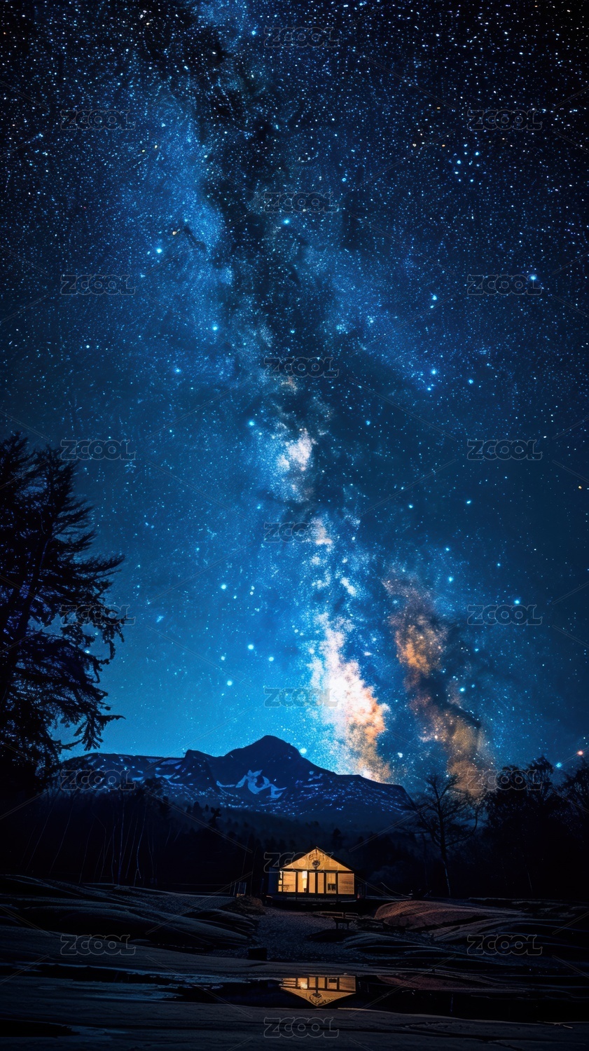 银河流星梦幻山野湖景商业场景