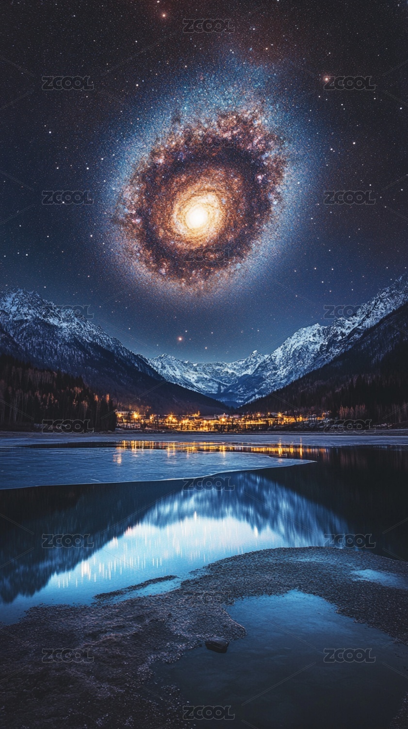银河系太空螺旋雪山夜景星空