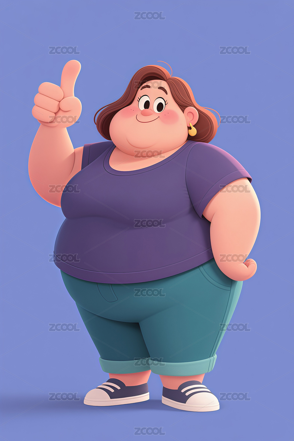 夸张乐观丰满肥胖亚洲女性3D卡通