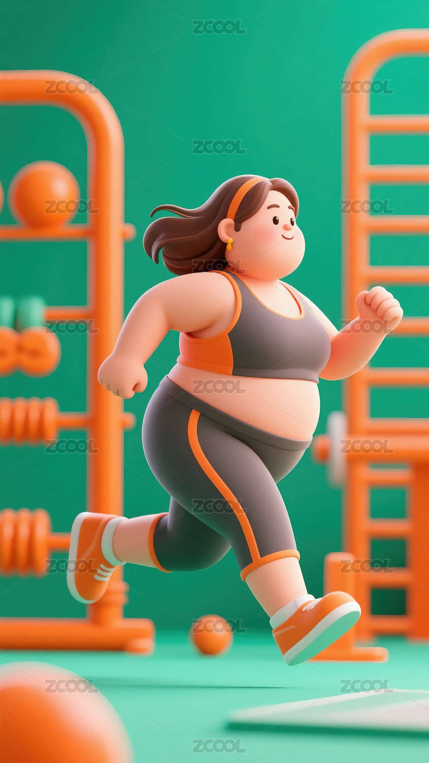 女孩,胖人,减肥,运动,跑步,有氧运动