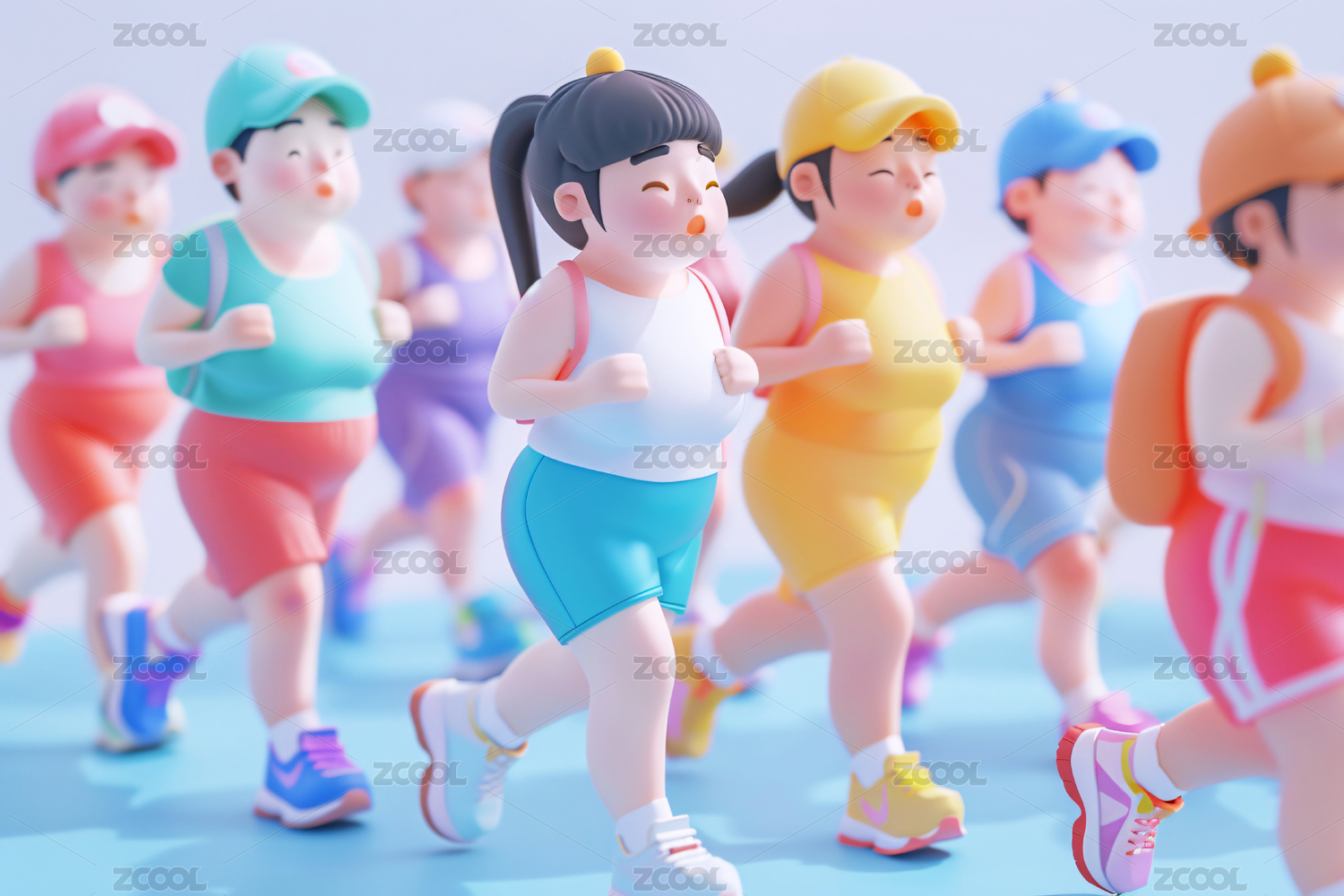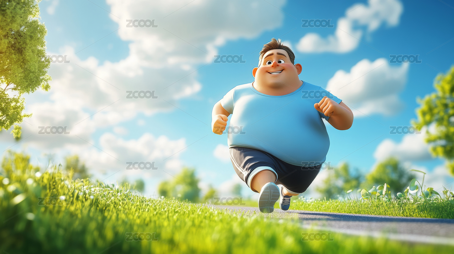 肥胖人物夏日健身跑步运动减肥锻炼概念插图