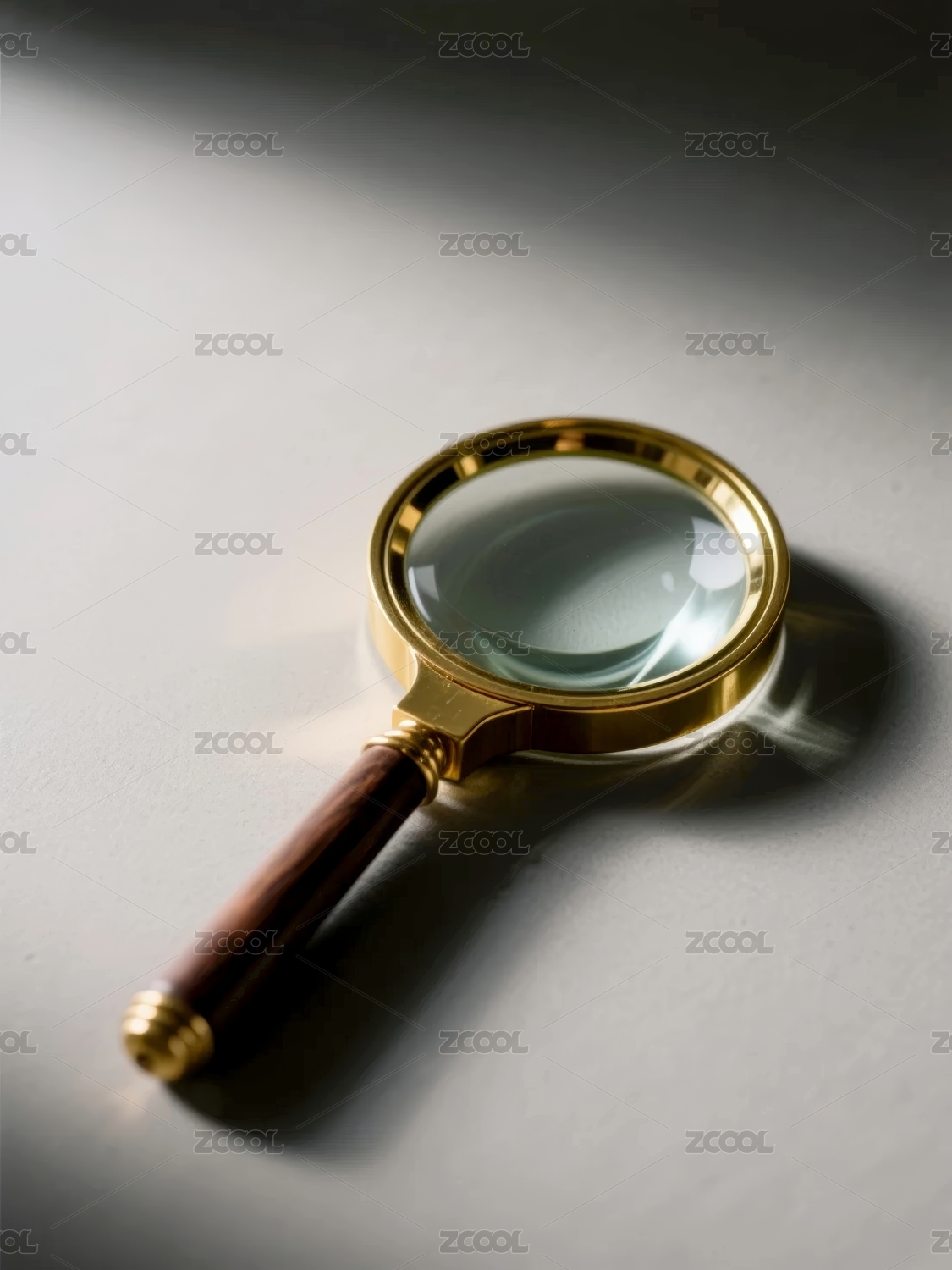 金色手柄放大镜特写图