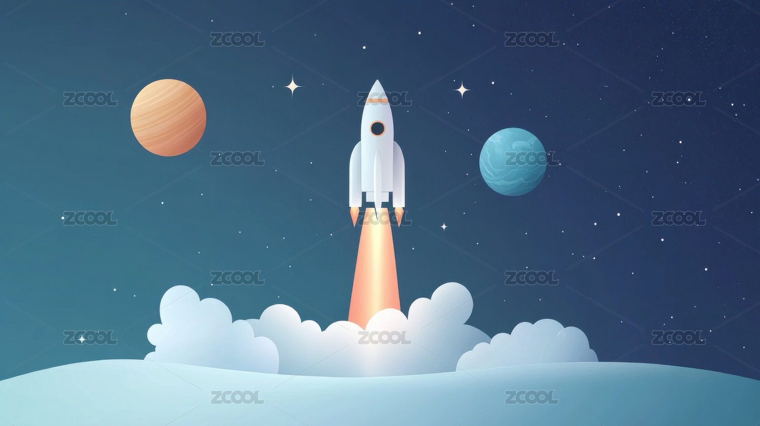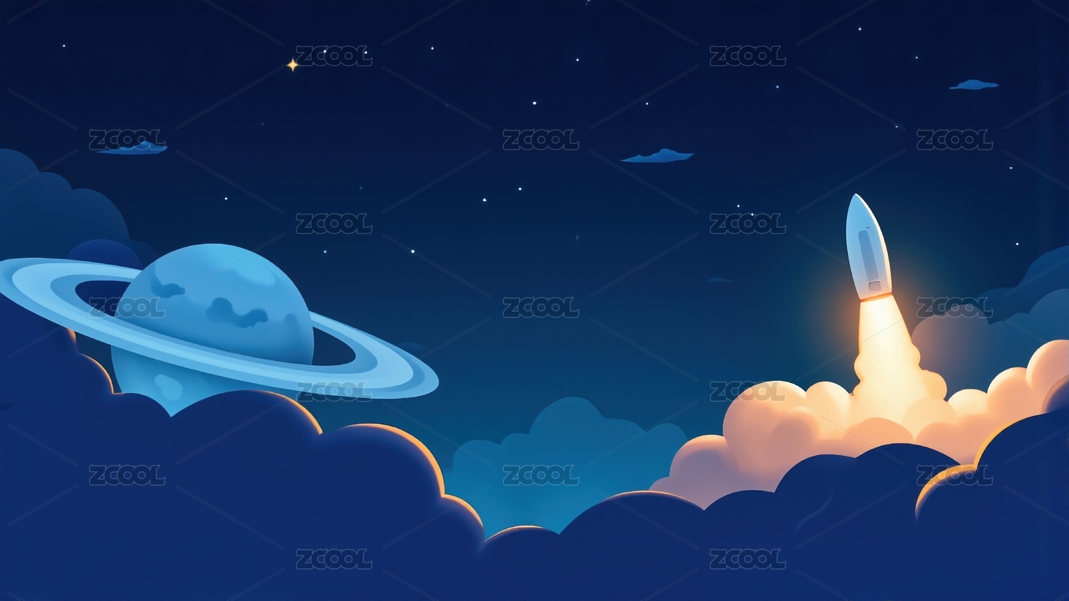 火箭,云层,夜空,星星,行星,土星环,发射,宇宙,太空,科幻