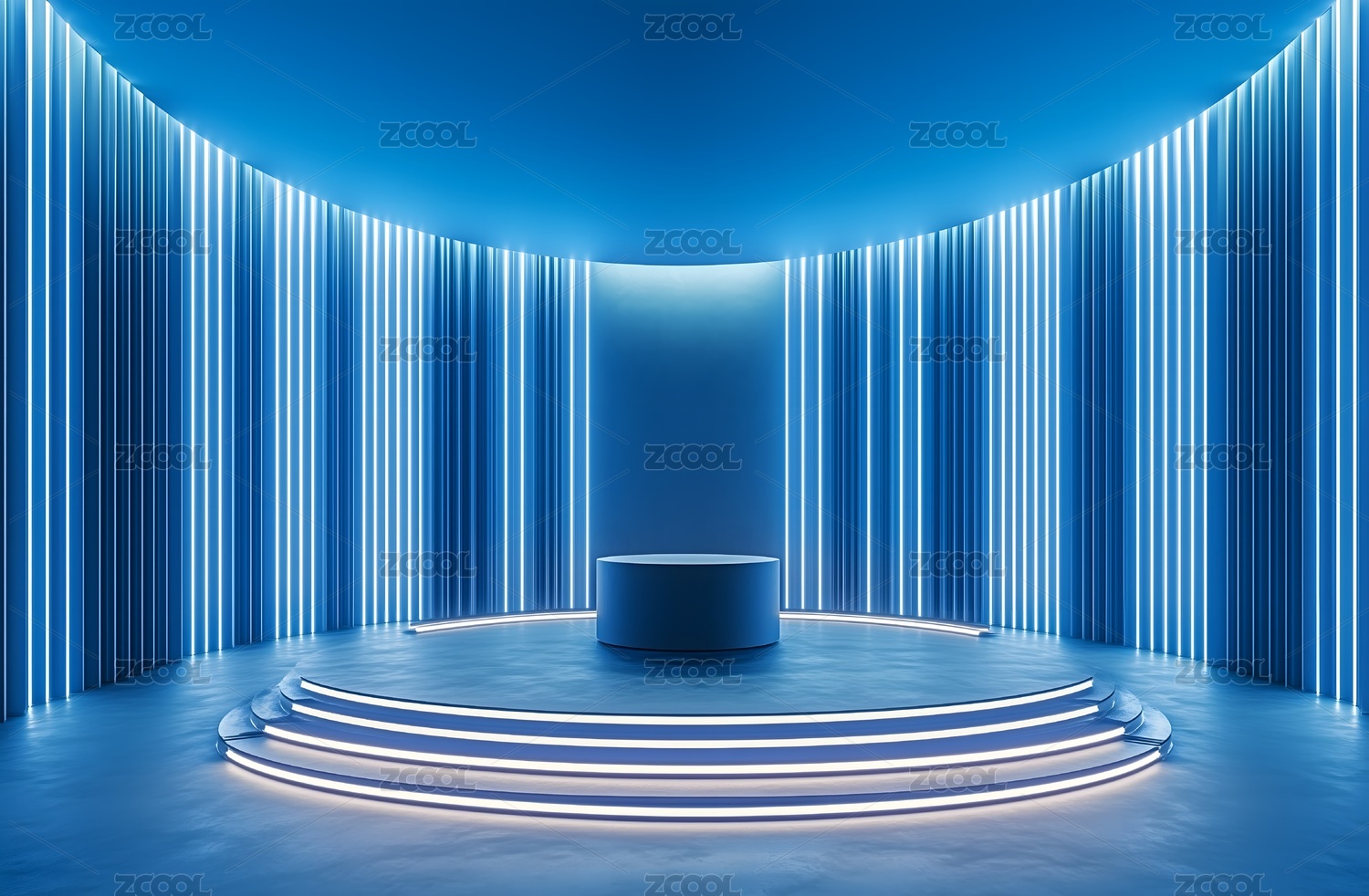 蓝色霓虹灯照射下的圆形阶梯舞台