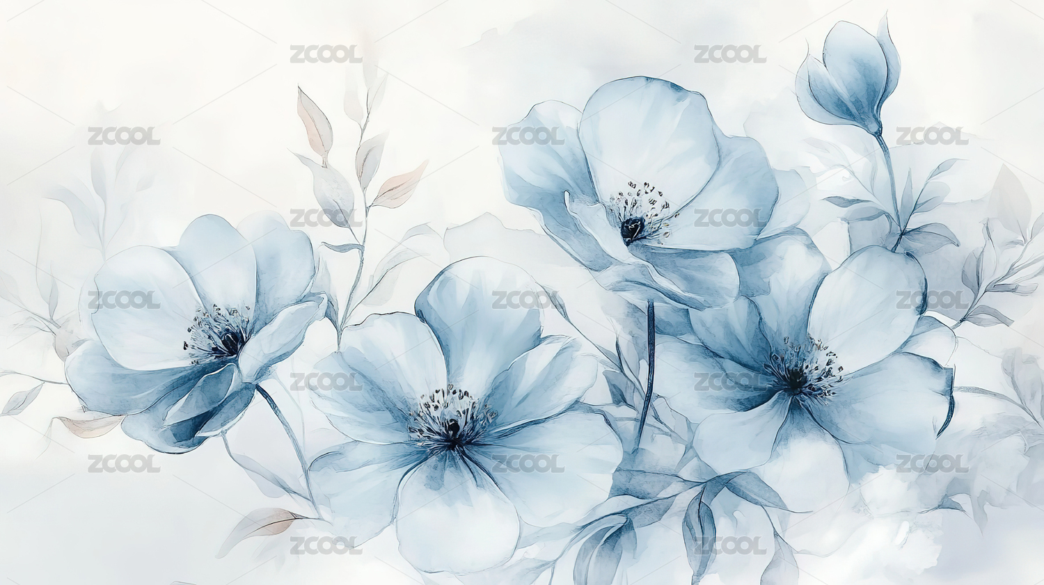 淡雅水彩花卉图