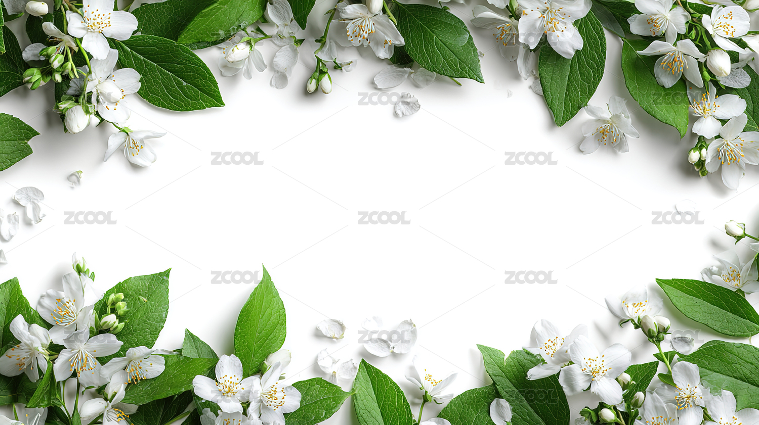 白色花朵与绿叶组成的边框