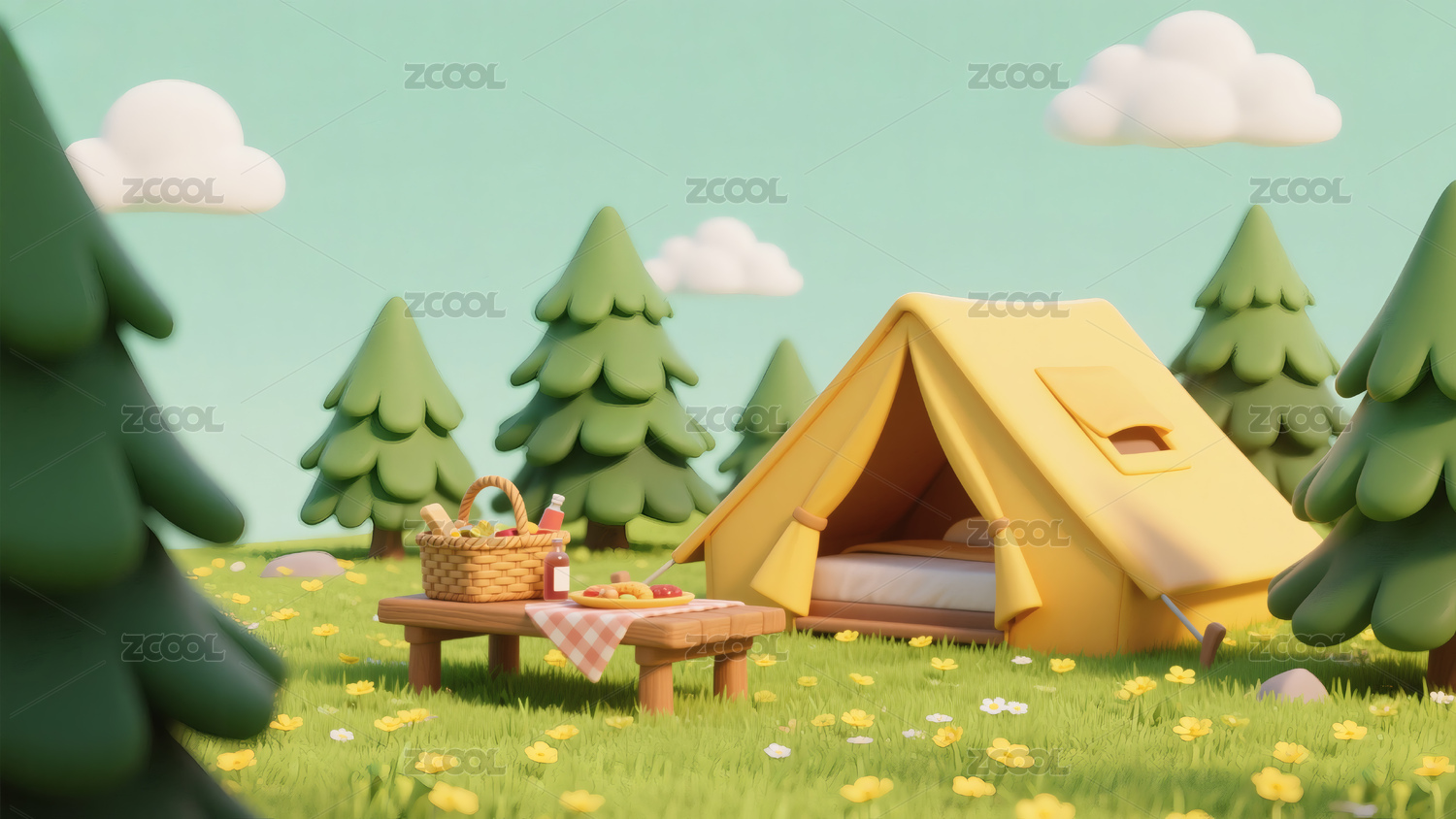 3D户外森林露营帐篷插画模型