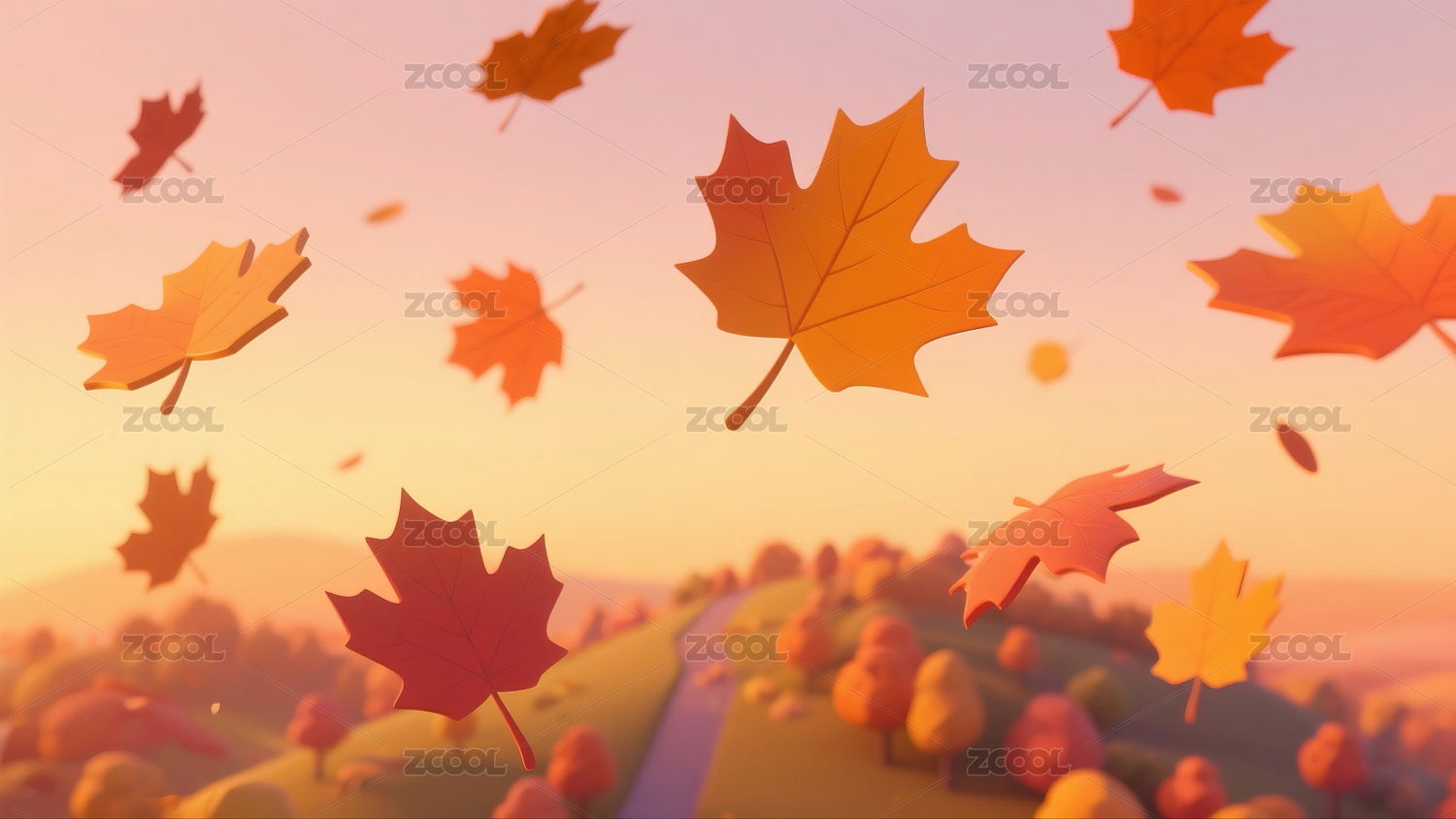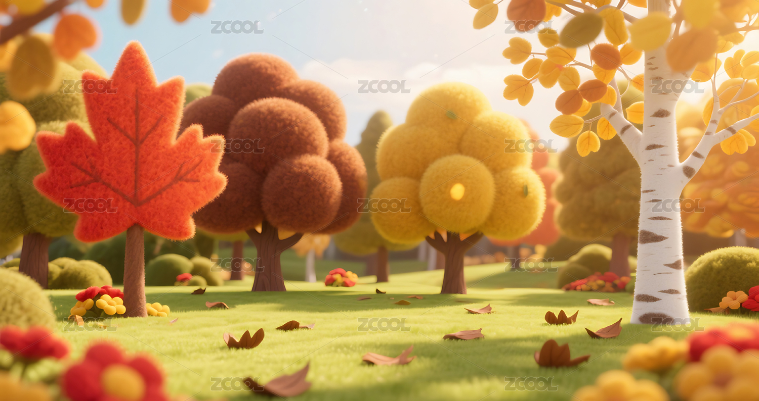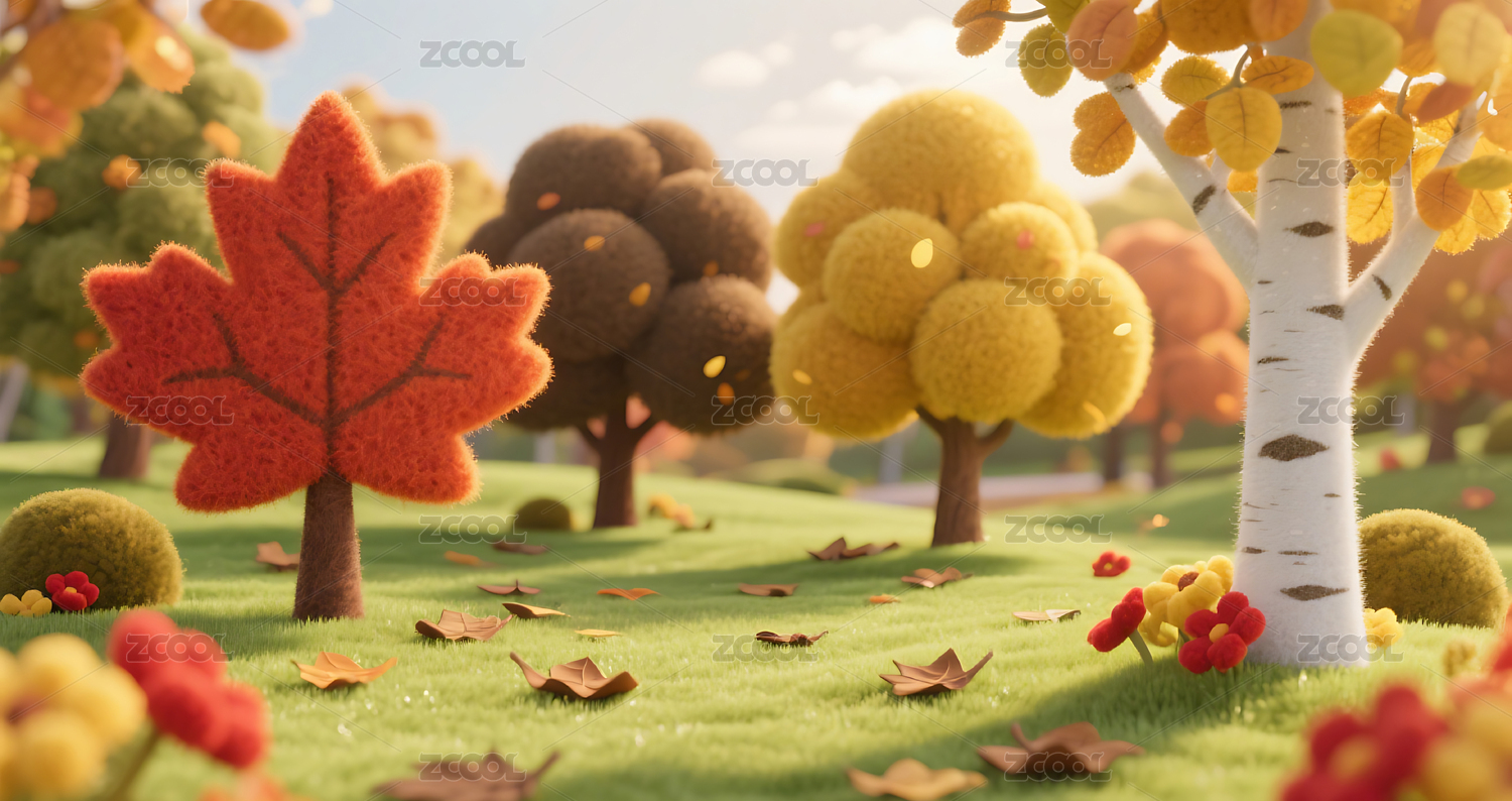 三维,3D,秋天,枫叶,立秋,树林,风景,背景